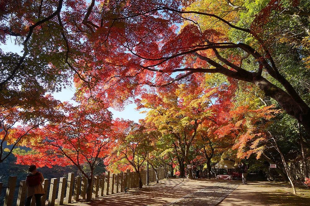 11月の中旬の朝8時半ごろ車で訪れました。ここは民間の駐車場しかないのですが、まだがらがらに空いていました。2度目の訪問ですが、期待通り素晴らしい紅葉を見ることができました。ただ初回よりは紅葉への感激が薄らいだ気がします。ここは長い階段を上る必要もないので、お年寄りでも楽に見学できるところです。建物は国宝もなく、目をひくものは特にありませんが、立派な山門と紅葉は絵になります。9時半ごろ駐車場にもどったときは満車に近かったので、早めの拝観をお勧めします。