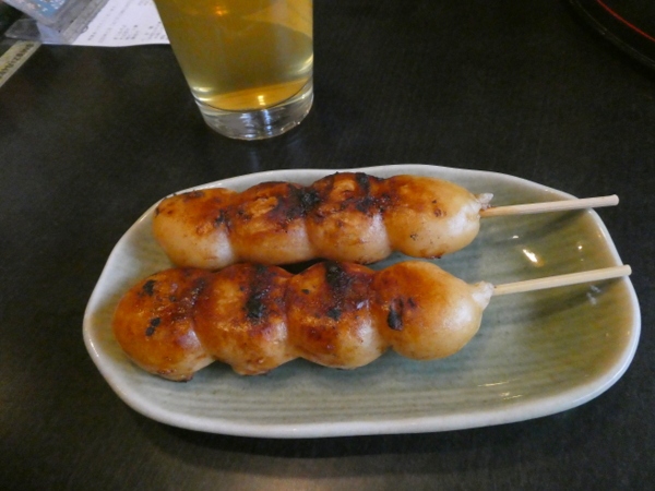 焼き団子、香ばしくてモチモチしておいしかったです。そば団子は初めてたべましたが、甘さ控えめのあんこと独特の食感のお団子もなかなかよかったです。