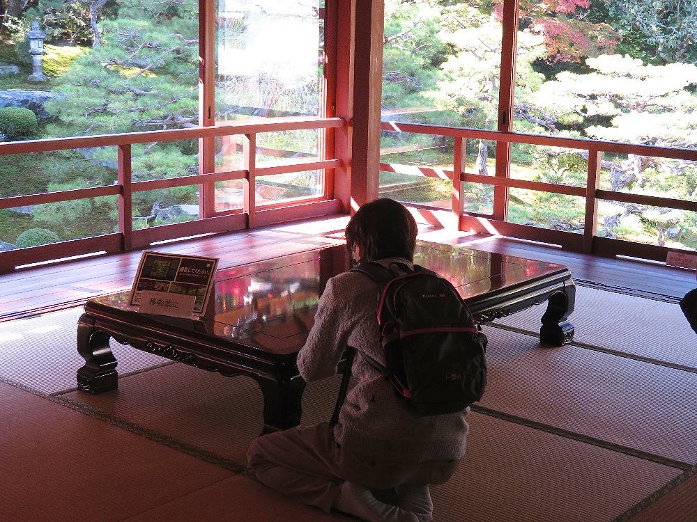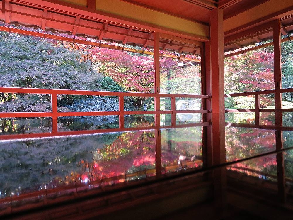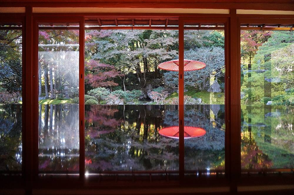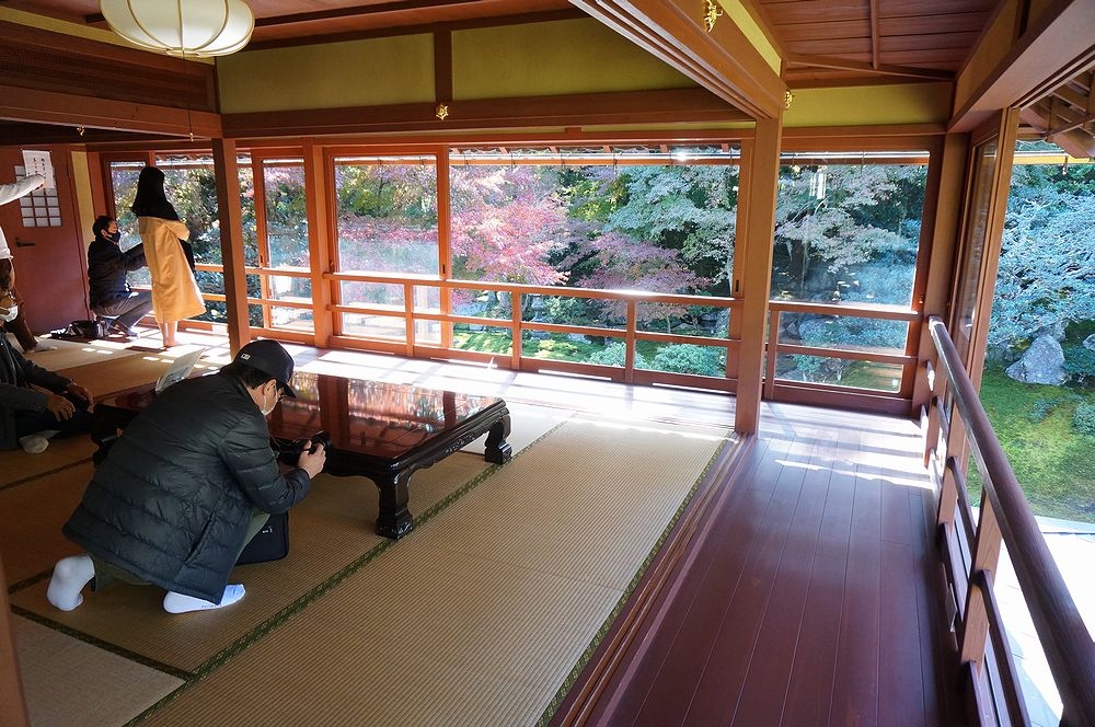 瑠璃光院が予約制になってしまい、残念に思っていたところ、ここでも同じようなリフレクション(磨かれた机に庭の景色が映りこむ)撮影がかない、拝観料も瑠璃光院の2000円に対して330円でお安くすみ、しかも空いているという情報をネットで知り、立ち寄ってみました。紅葉はまだ見ごろには早かったのですが、なかなかいいお庭で、拝観客も少なく、ゆっくり撮影することができました。リフレクション撮影は、コツを掴むまで何度も取り直しが必要で、ここはそれができるのでお勧めです。なおここは拝観料をGo To トラベルクーポンで支払うことができました(ちょうど3人分)。
