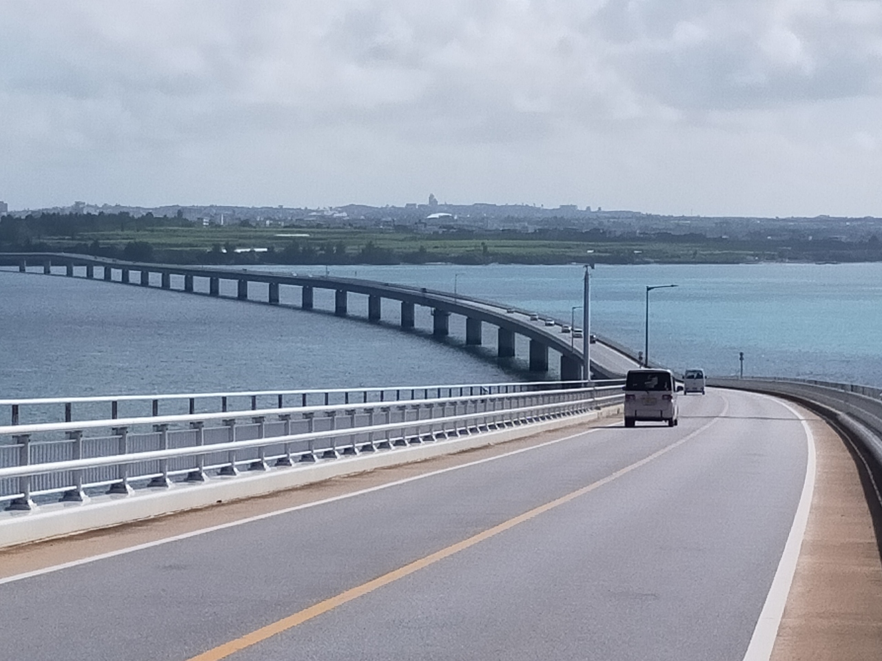 長い橋ですが、直線でなく中央部が高くなっていたり、少しカーブしています。むしろそれが、柔らかい雰囲気を感じました。橋の両方に駐車スペースがありました。橋の中央部にも緊急停車用のスペースがありましたが、通常は停車禁止のようです。