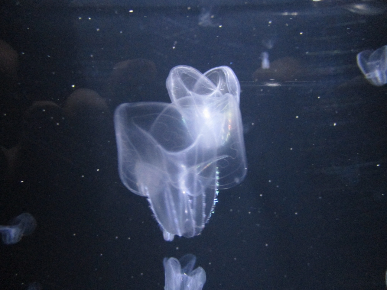 加茂水族館は、世界一のクラゲ展示種数を誇り、常時60種以上のクラゲの生態や神秘を堪能できる「クラネタリウム」では、直径5mの大型水槽「クラゲドリームシアター」に約1万匹のミズクラゲが浮遊しています。