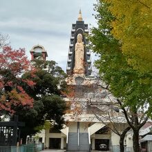 本堂の上には観音様、そして後には7重の塔が高くそびえ立っています。