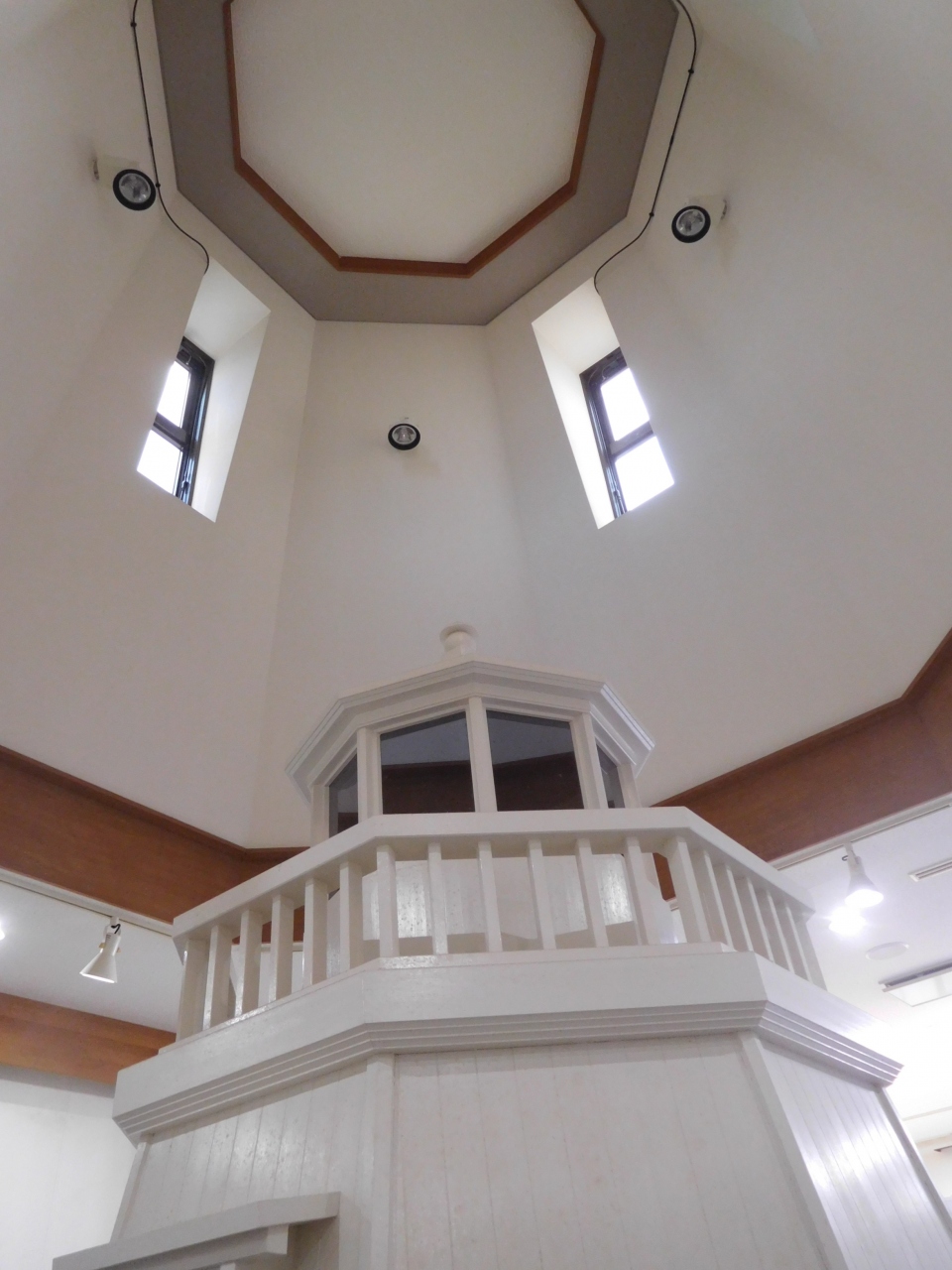 灯台の形を模した天井部分や模型も印象的。
