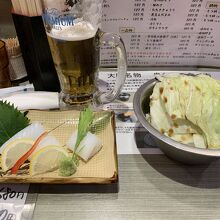 お通しはおかわり自由の塩だれキャベツで、自分的には好きなメニューです。
