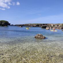 下地島の通り池に行く途中にあるビーチ。波が穏やかな内海になっていてとても透明度が高いためか、各種マリンスポーツが盛んのようです。シーカヤックやシュノーケリングを楽しむ地元の若者の姿が沢山ありました。一見穴場のようですが、結構混んでいます。