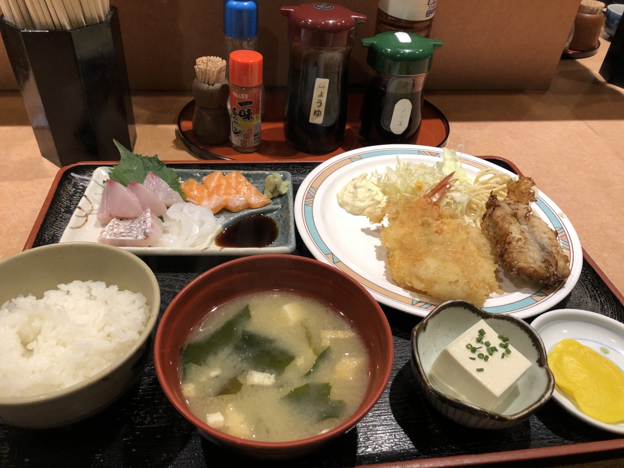 大エビフライは油たっぷりだったので微妙でしたがフグのから揚げは美味しかったです。朝6:40から(旅行でなければまだ起きていない時間)定食(それもフライ)なんて食べれるか心配でしたが美味しかったので完食でしました。