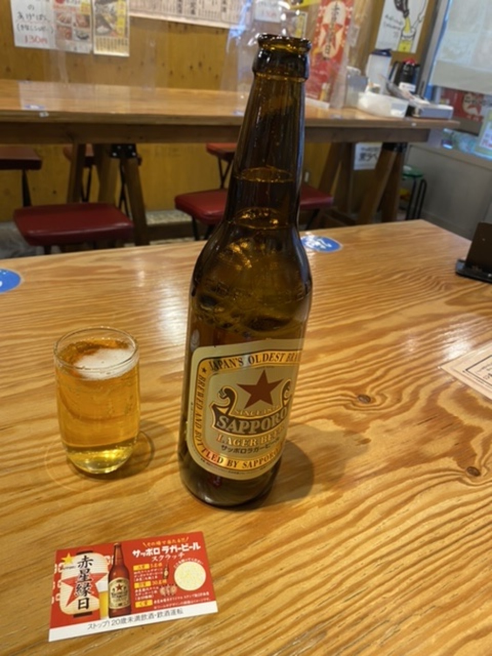 先ずはサッポロラガー赤星を!赤星は美味い(^^)