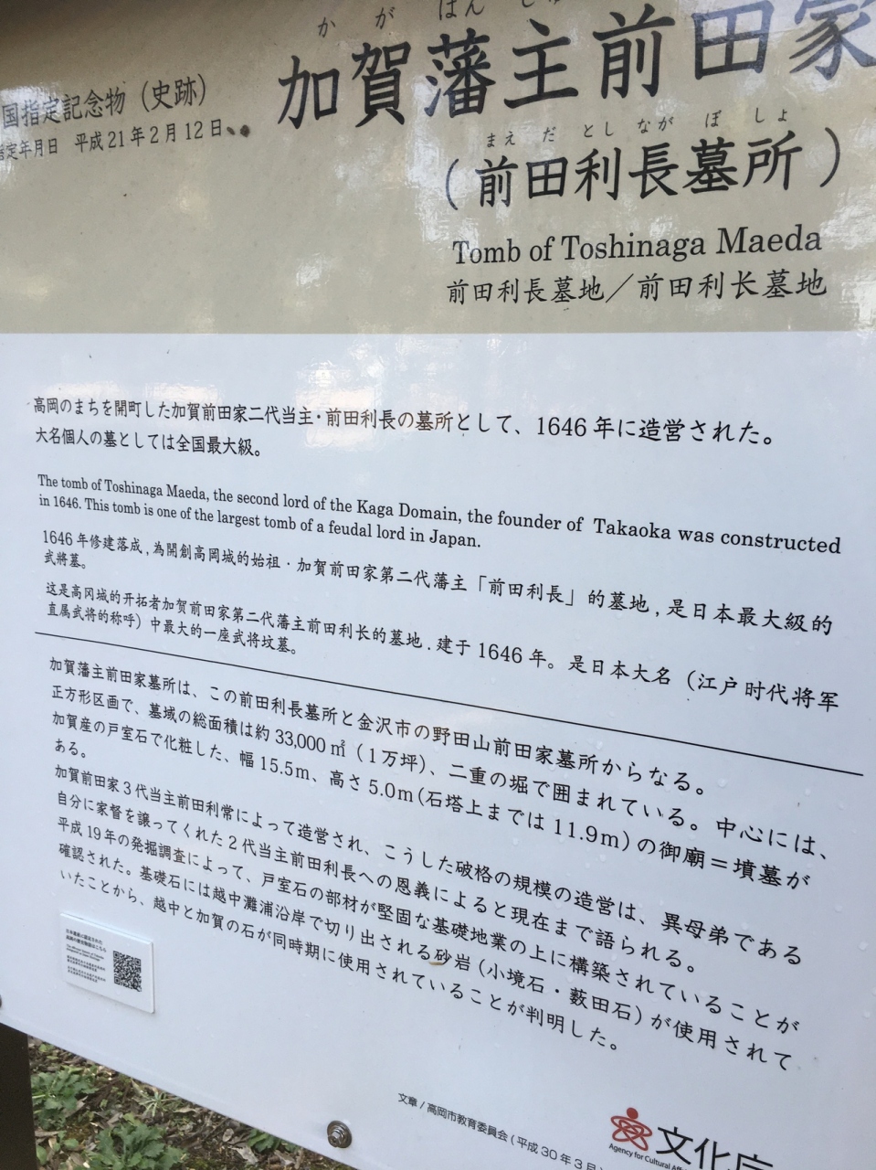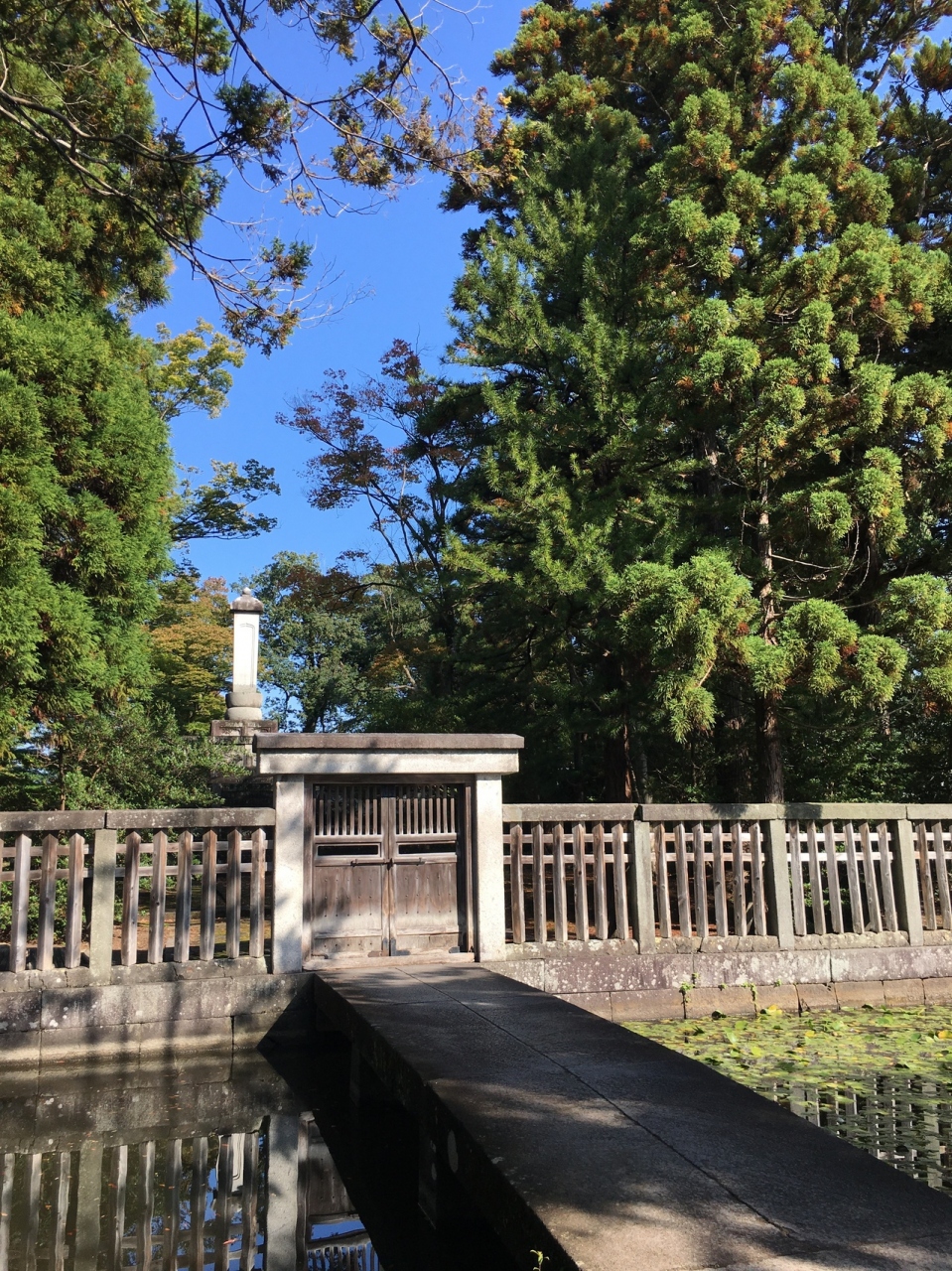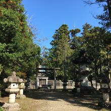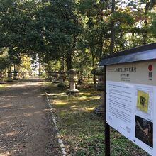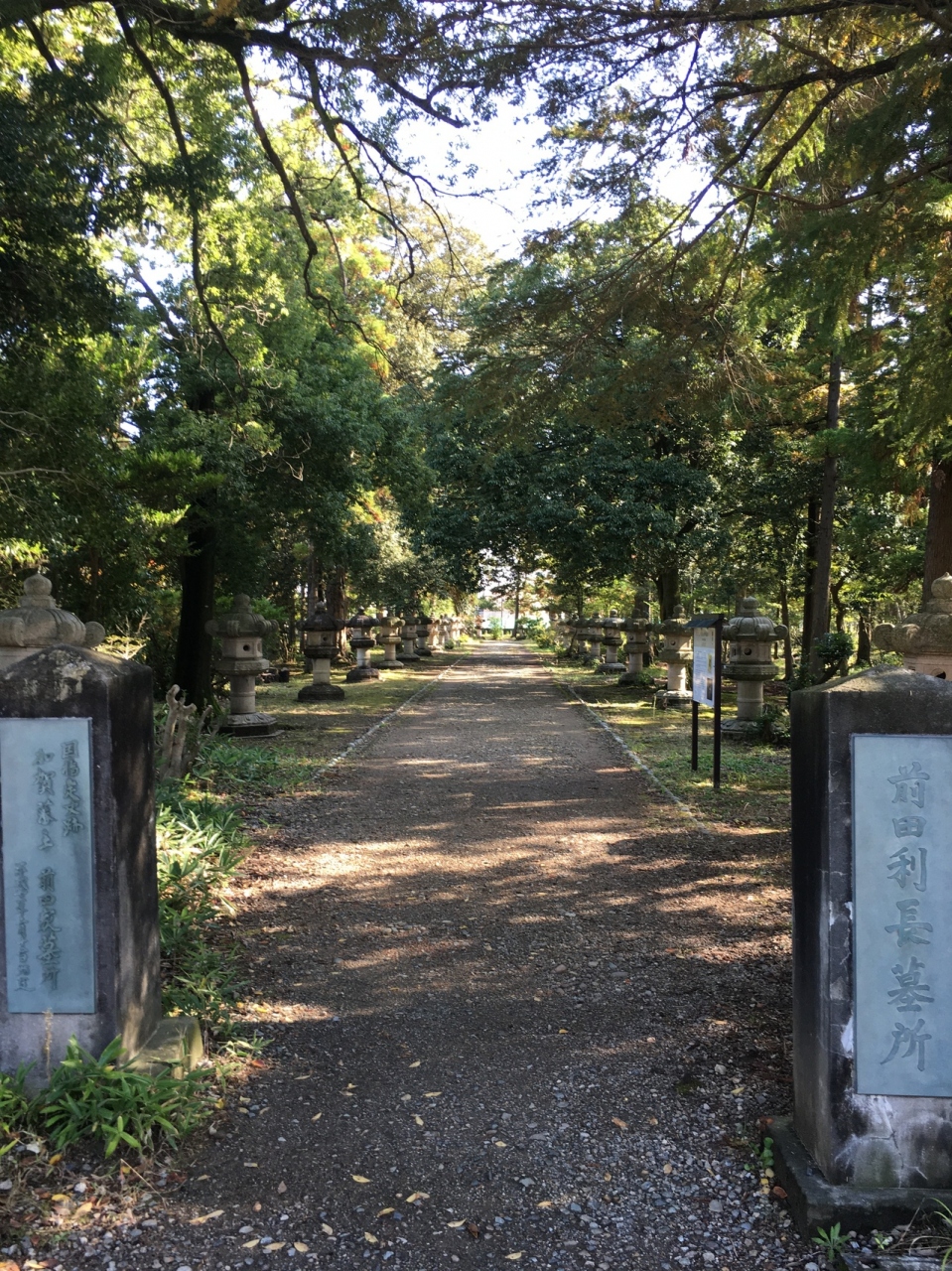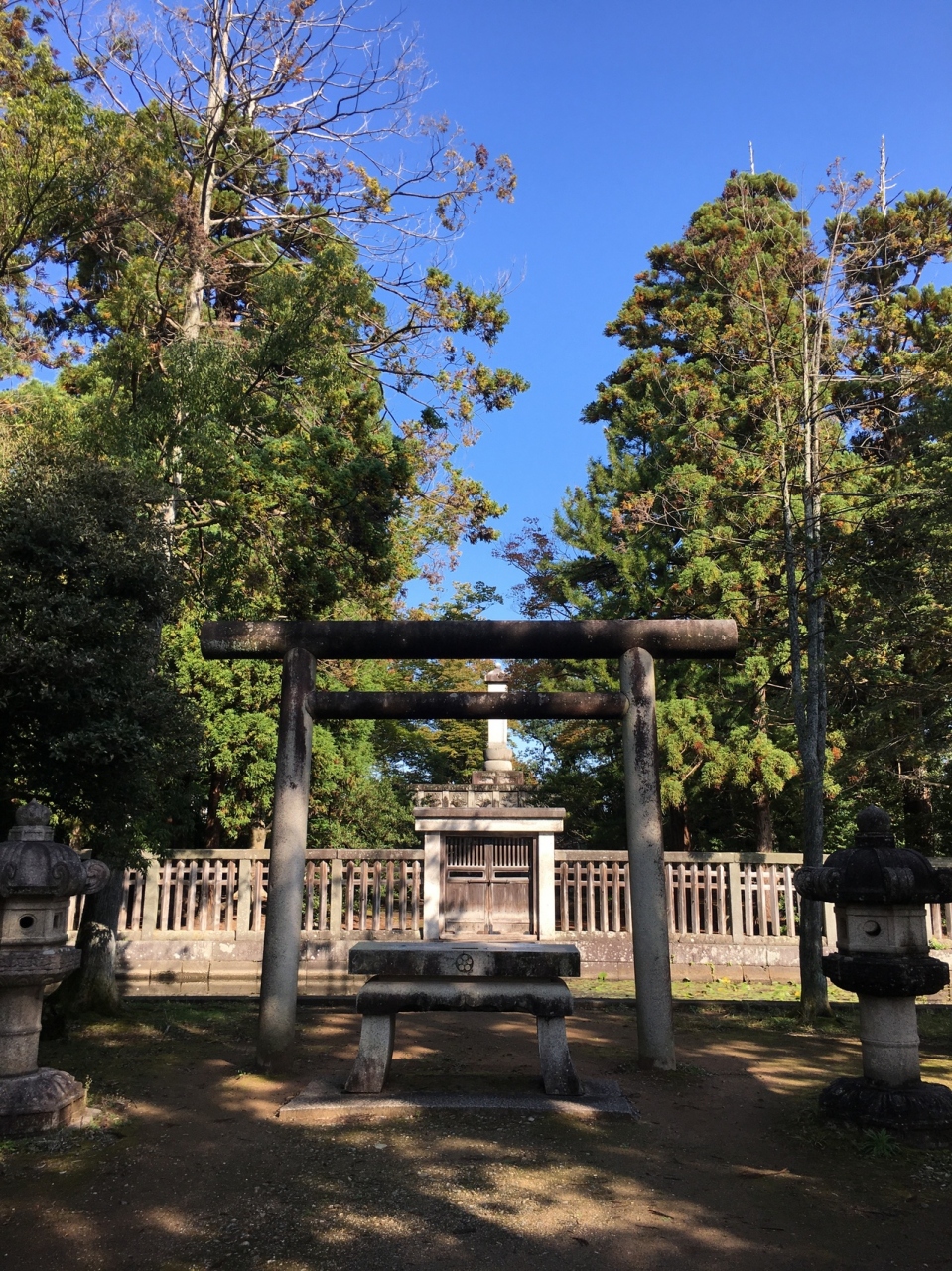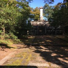 出入口から墓所までは砂利道で左右には大きな木と燈籠が並び、墓所に着く前から立派な墓所と感じました。4分ぐらい歩くと左側に鳥居があり囲いに囲まれて高い塔が建っていました。天皇の御陵のような感じで、大名個人的の墓としては全国最大級です。