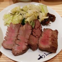 出張時の夕飯で利用。仙台で夕飯を取ってから、八戸に向かおうとうことになり、牛たんの老舗「利久」さんへ。極み定食 牛たん(4枚)にテールスープ、キャベツの漬物の他、サラダ・とろろ・佃煮・甘味付き。肝心の牛タンは肉厚でジューシィ?(゚д゚)ウマーで、ございました。とろろ・佃煮もいい箸休めになり最後まで美味しく食べることができました。