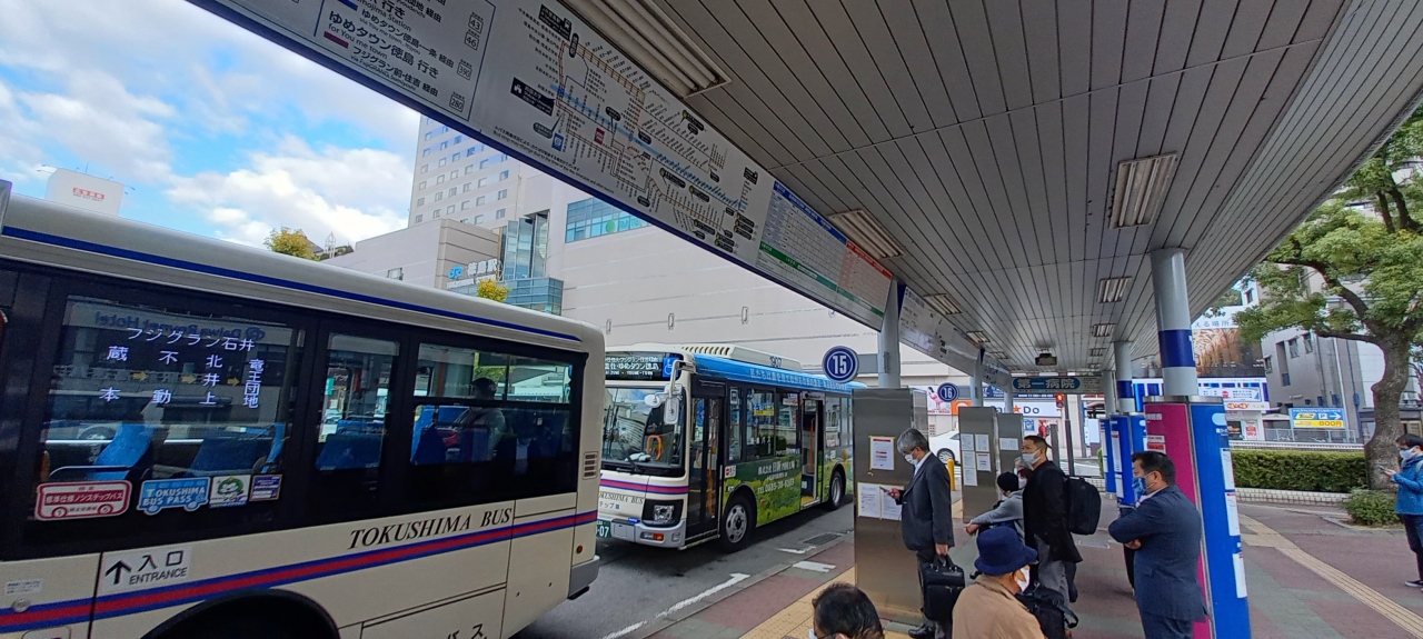 徳島駅から徳島阿波空港まで利用。15番のりばから飛行機の離発着に合わせて運行。途中下車できず30分ほどで着きます。チケットは当日のみ利用可能で600円ペイペイ使えます。現在は減便の影響で運休便多数あり。タクシーは小型車3500円ほど。