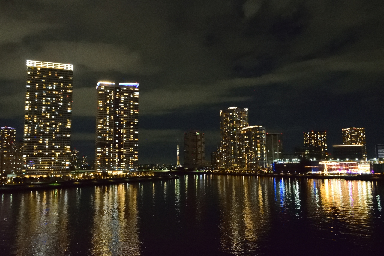 首都高速10号線も通過する運河に架かる橋です。橋の北東側には橋が存在しないため、運河沿いのビルの夜景を存分に楽しむことができます。橋の南西側には遠くにレインボーブリッジも望む事ができます。橋は遮るものが何もなく風が強めなので注意が必要です。