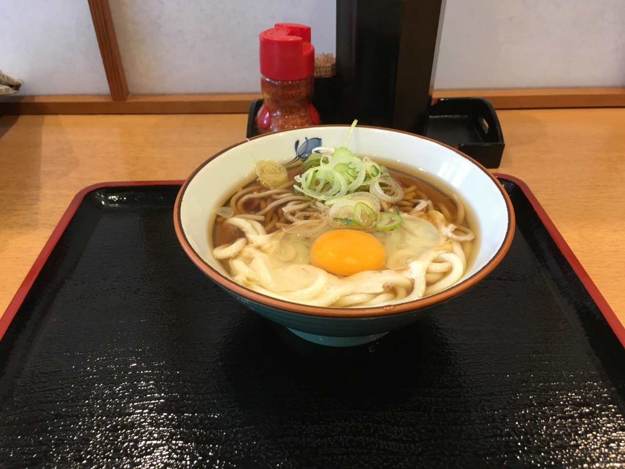 高岡駅ビルのクルン高岡の2Fにあるうどん・そばの店です。セルフの店です。3月に高岡に行った時のランチに利用しました。カウンター席で月見ちゃんぽんを食べました。「うどん」と「そば」のミックスしたものに、生卵、ネギをトッピングしたものです。安価で美味しい一品でした。今庄は、高岡駅前の側にも店があります。老舗の店舗です。