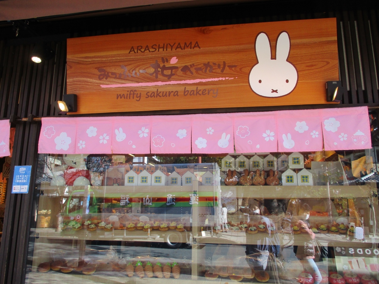 嵐山のメイン通りを歩いていてお店を見つけました。みっふぃー桜べーかりーの隣にはみっふぃー桜きっちんというお店があり、中はつながっています。べーかりーはパン屋さん。きっちんは雑貨などが売られています。