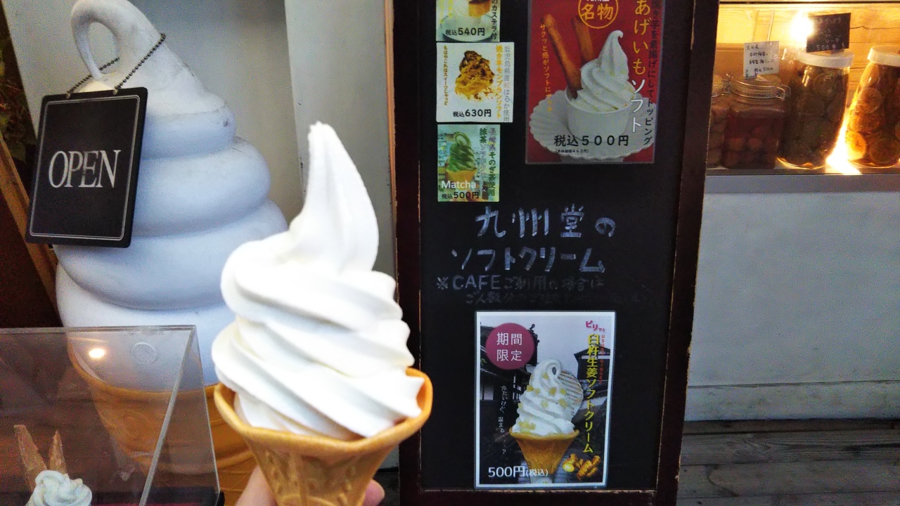 他にもおいしいものがあるようだが、ソフトクリームが気軽に食べれる場所である。その名の通り、九州産の生乳を使ったソフトクリームで、さっぱりした感じのソフトクリームである。外にはベンチがあるので、少人数であればその場で食べられる☆