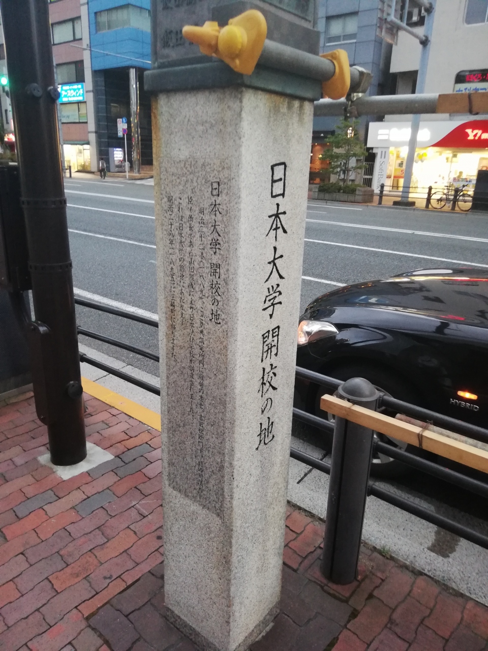 日本大学は全国各地にキャンパスがあるのでどこで開校されたというのはあまり気にしないかもしれません。じつは飯田橋周辺です。最初は法律学校でした。そしていろいろな学部を追加して今に至ります。あの巨大な大学も最初は都心の一角だけにあったのは意外に感じます。