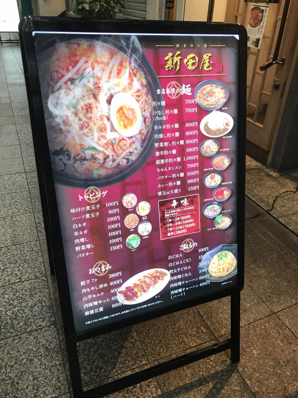 小倉魚町にある坦々麺屋さん。某うどん店の近くにある。ラーメン選手権で上位になったことがあるそうで、思わず入店。