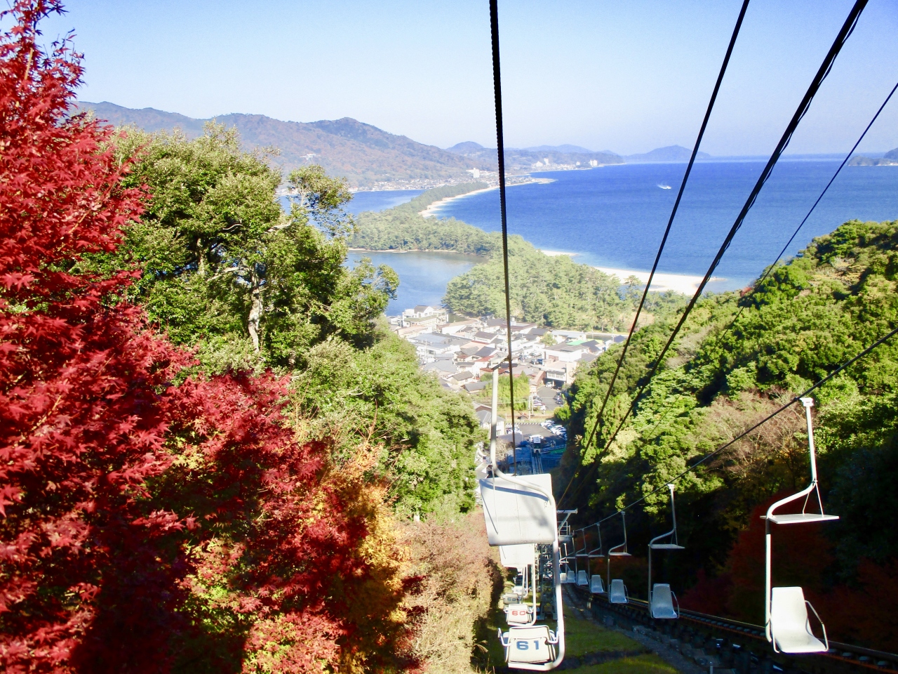 天橋立駅から少し歩きますが、スーツケースを預けるのに最初に100円払って100円戻ってくるのでここのロッカーを利用しました。モノレールは本数が少なく、暖かく天気が良かったので、私が見た限りでは全員がリフトに乗っていました。