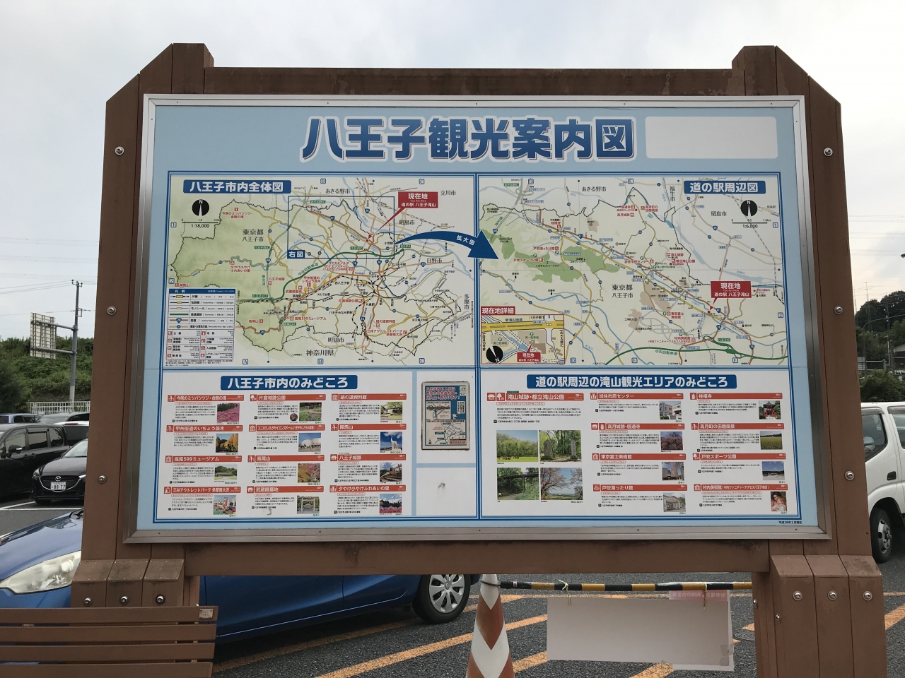 訪問が週末だったことも影響してか駐車場待ちの列が隣接する都道上まで延びており、初めての人には非常に分かりにくいかと思います、、、上り線側に面していますが、入庫待ちが発生している場合下り線や交差する道路からはまず入れません。道の駅を少し過ぎた立川よりに第二駐車場がありますが、こちらの収容台数はそこまで多くなく、どちら側に入ることができるかは運次第。駐車場同士の行き来はできませんが少し工夫すればもっとスペースを広く取れそうな気がします、、、