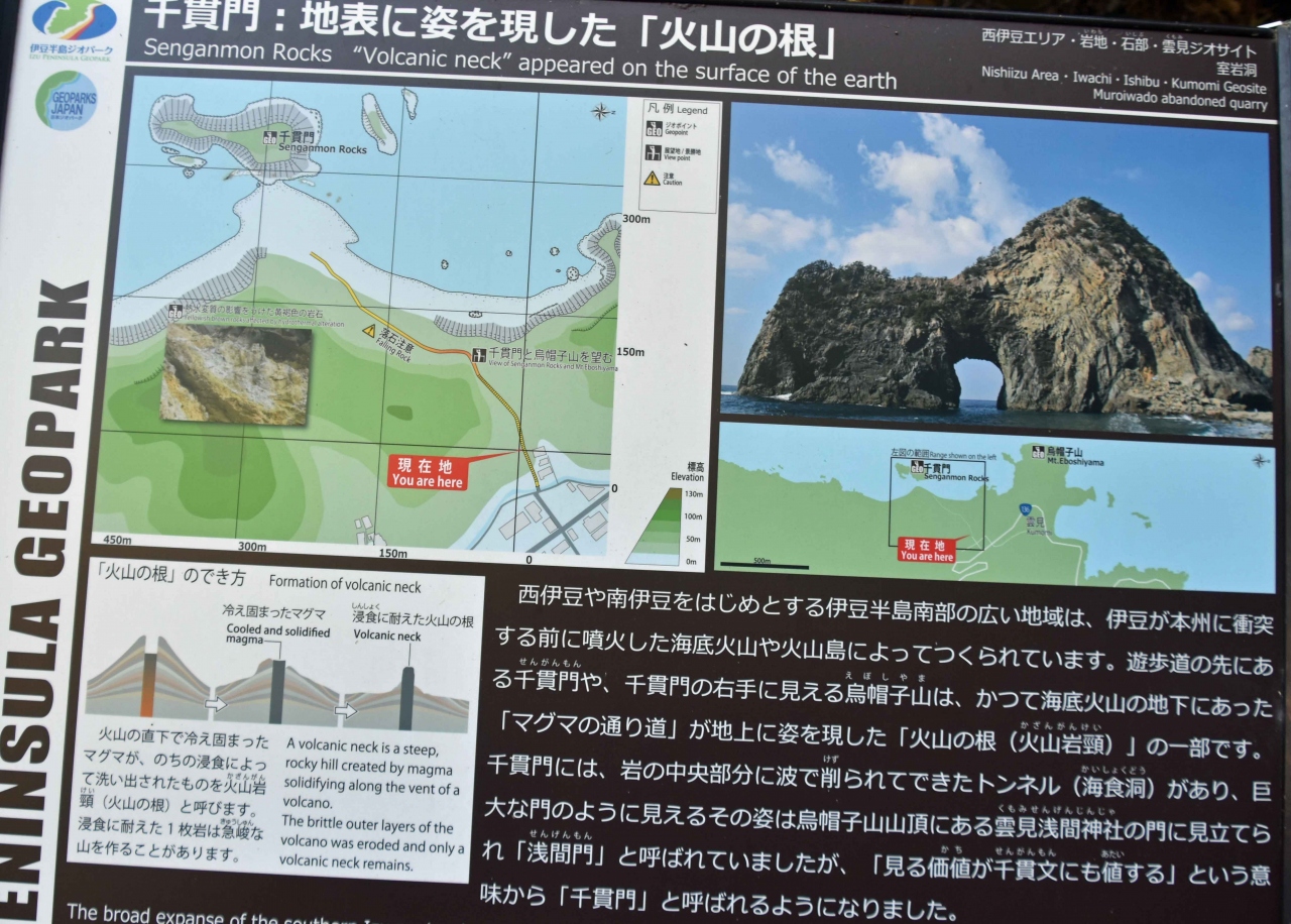 久しぶりに千貫門を訪れましたが、残念ながら浜まで降りることはできません。先の台風などの影響で、雲見から入る道が封鎖されています。途中まではいけましたが、下りの道は半ば崩壊状態です。復旧されそうにもないじょうたいです。陸路がだめなら舟で浜に行くしかないでしょう。
