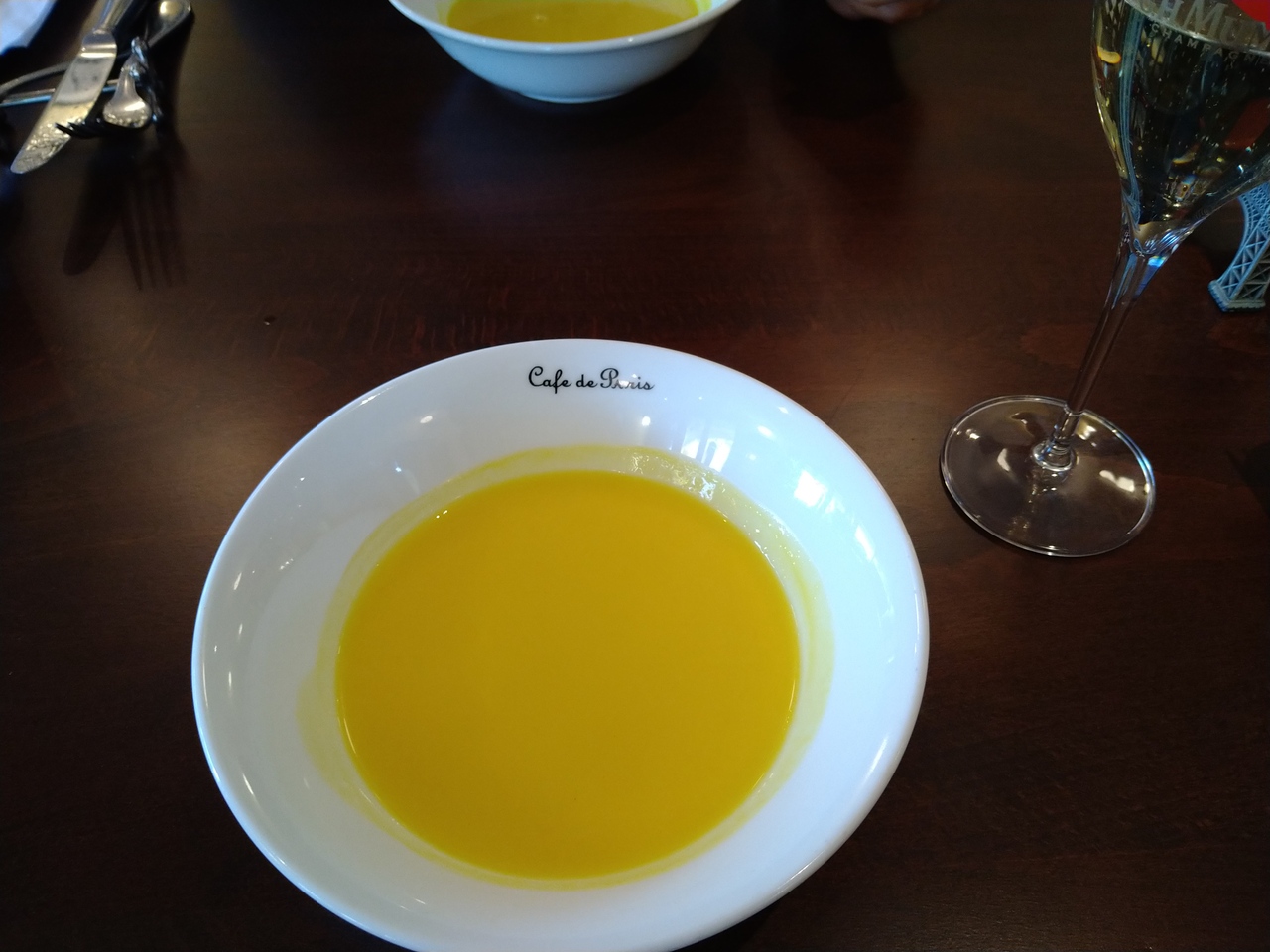 店内はまさにパリ!スタッフとお客さんがフランス語で楽しそうに会話していたり、アコーディオンやピアノ演奏をしてくれるキュートなフランス人おじさまが客席をまわってきたりと、なんか楽しすぎじゃないですか!甘いカボチャスープや、メインのお肉も美味しかったけど、とにかく雰囲気最高!パリに行きたくなった…。