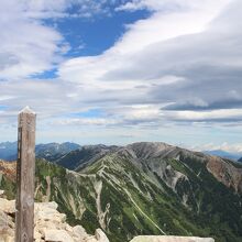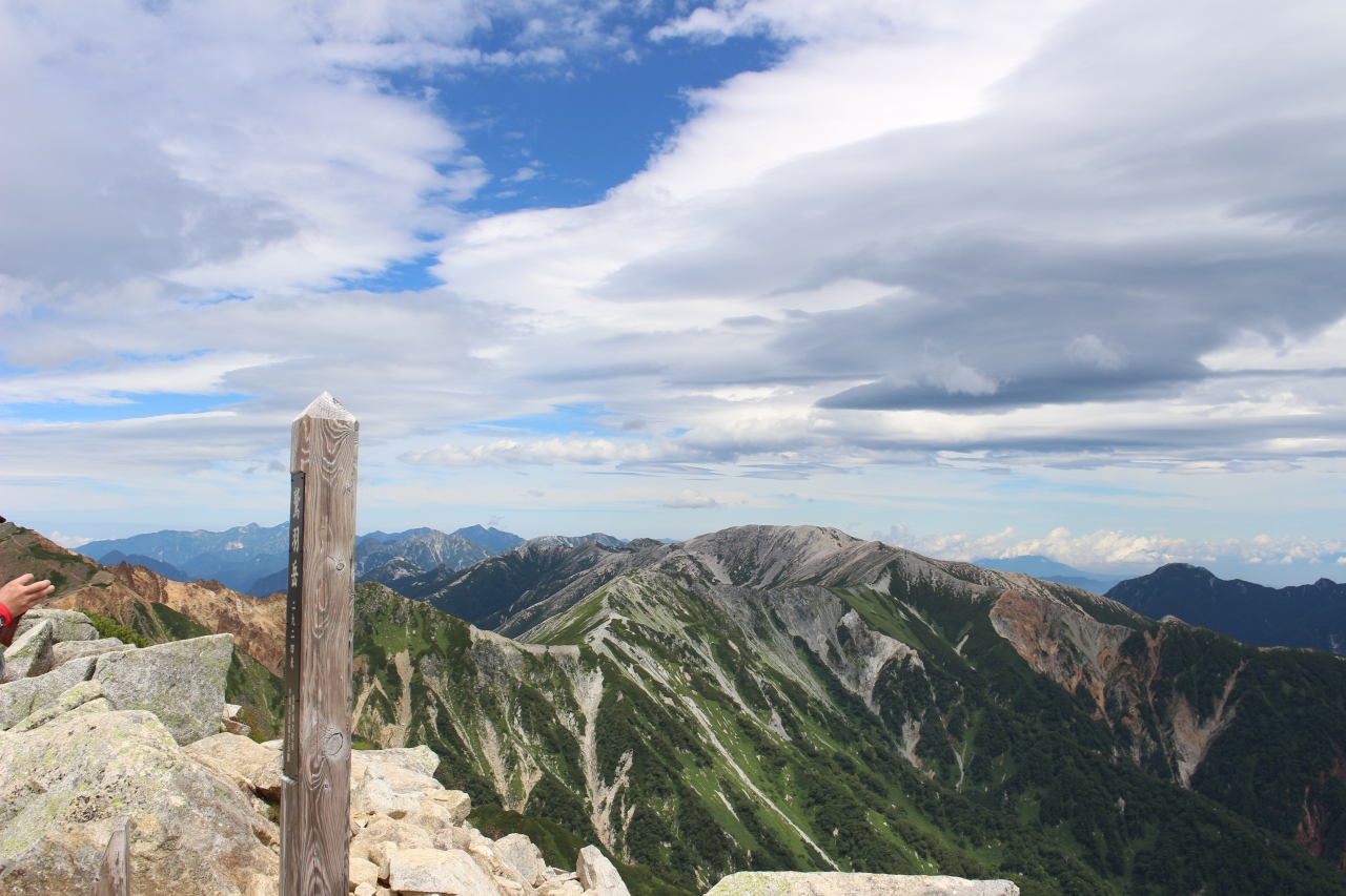 双六小屋から、双六岳、三俣蓮華岳を経由し到着しました。稜線を直登のような道で、結構な強風でしたが、なんとか登頂できました。反対側に下りて回り込んで戻りたかったけれどその体力はなかったです。かっこいい山容でいつか行きたいと思っていたので、行けてよかったです。向かうに見えた水晶岳にもいつか行けたらと思います。