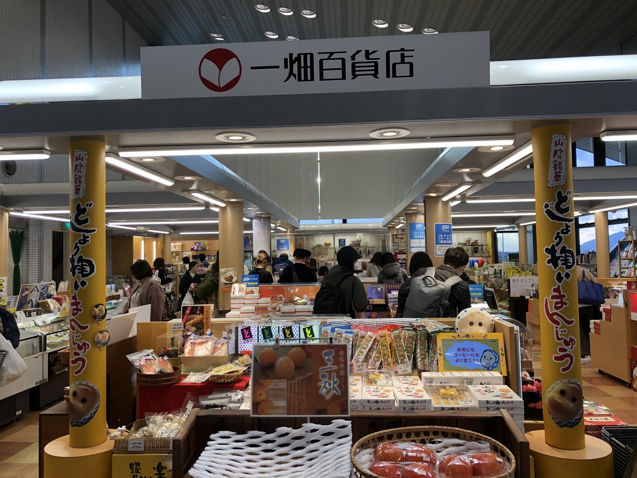 商品が多く並ぶショップです。道端百貨店と言うと島根様地盤とするデパートで、松江市内に本店を構えています。空港の出発フロアに大きく店舗を構えており、お酒から地元の珍味、チルド商品などお菓子も多分に取り揃えており非常に便利でした。出雲のそばや宍道湖のシジミを使った商品など目新しいものが多かったです。