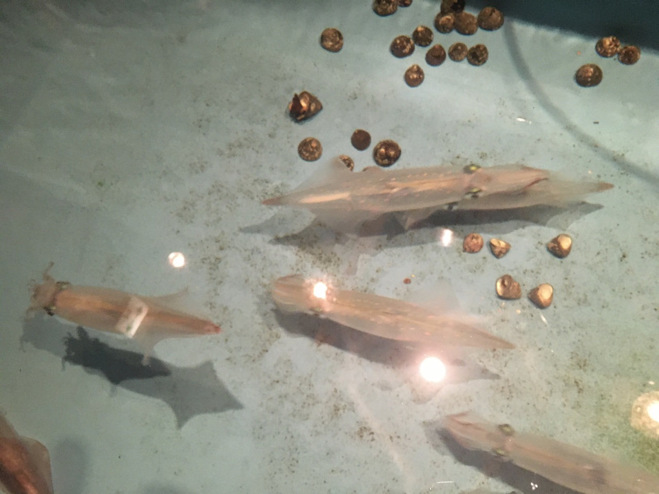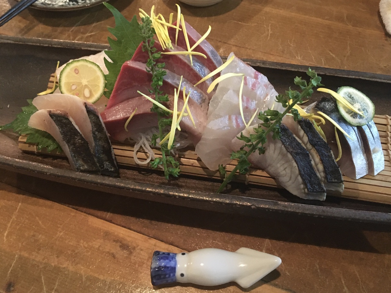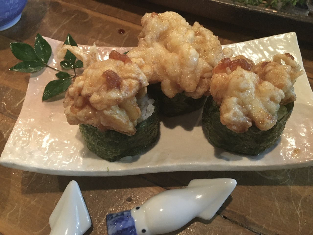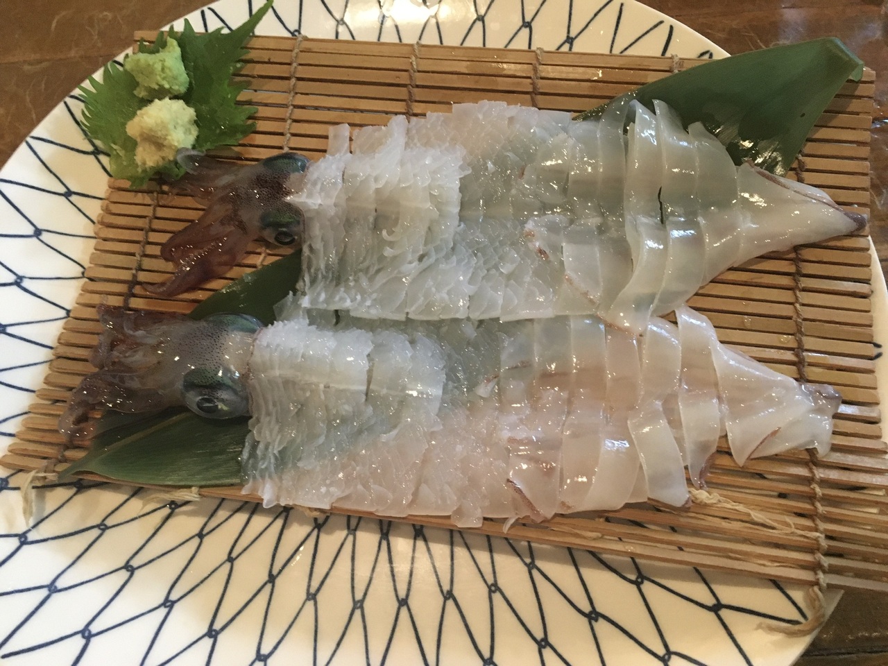 予約したテーブルには「ようこそ○◯さん、いか天国へ」、と歓迎メッセージが置かれています。この日のいかは三浦半島の松輪で獲れたもので小ぶりが2杯でした。ゲソに醤油がたらし、活がアピールされます。にぎやかな店内でした。