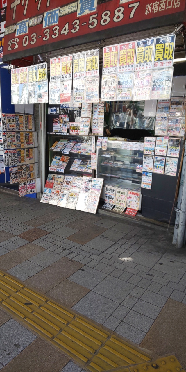 新宿西口側の思い出横丁近くのチケットショップが並んでいる通りにあります。赤い看板が目印です。