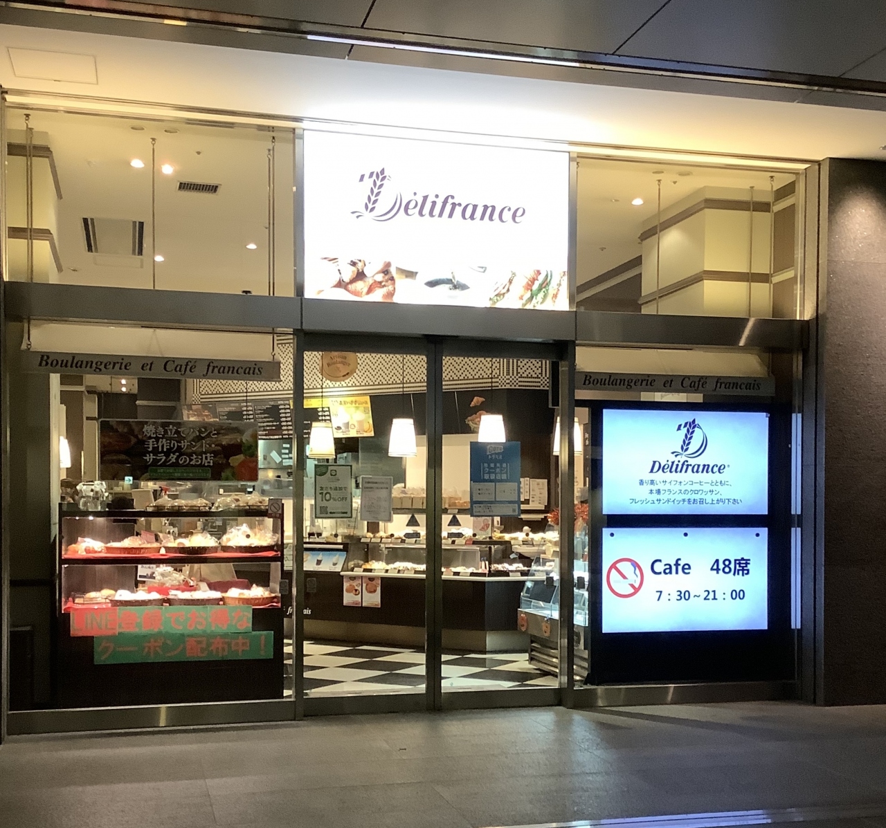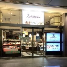 入り口はパンが並び一見パン屋さんですがショーケースにはサラダやサンドイッチも並び奥にイートインスペースが有ります。