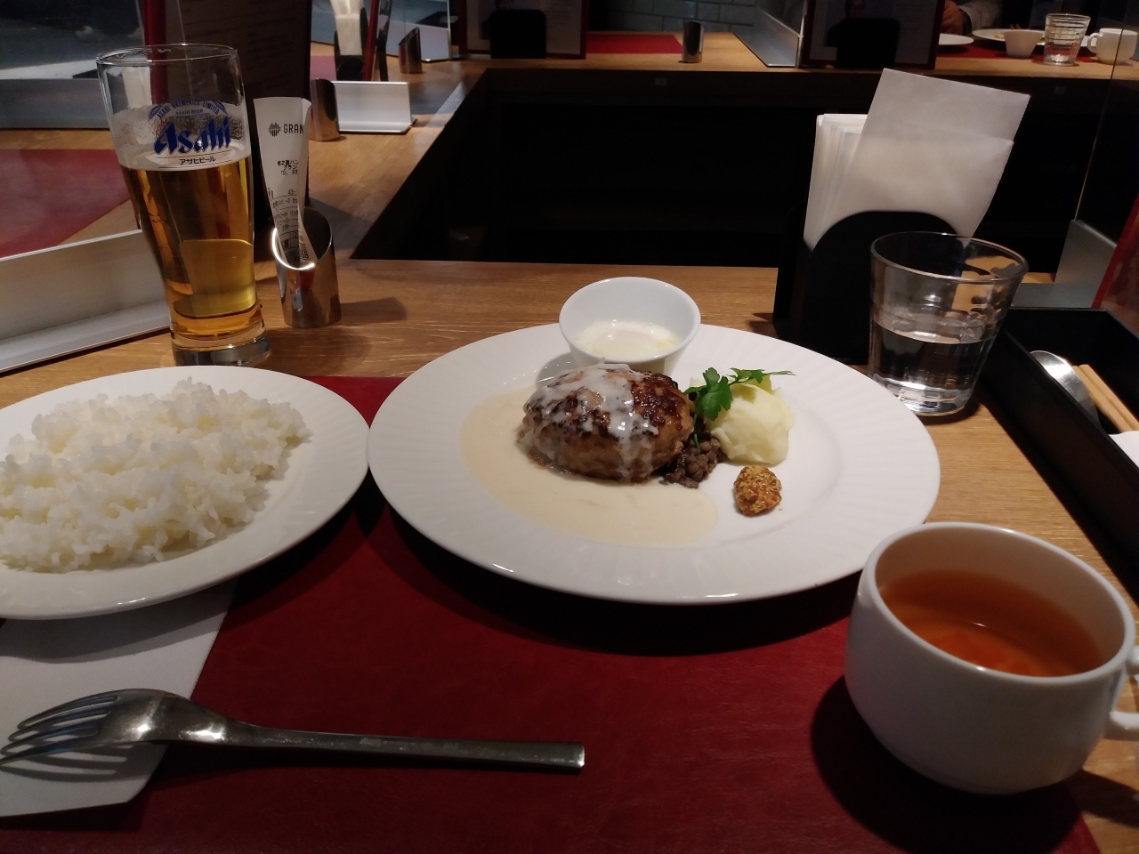 東京駅新幹線口から比較的近い食事処は限られるものの,アルコールを一杯飲みながら洋食という選択肢ならこちらがおススメ。特製のハンバーグは肉汁たっぷりで,ソースを3種類から選べる。マッシュポテトもそつがない味で,ビールやワインとよく合う。新幹線待ちにぜひ。