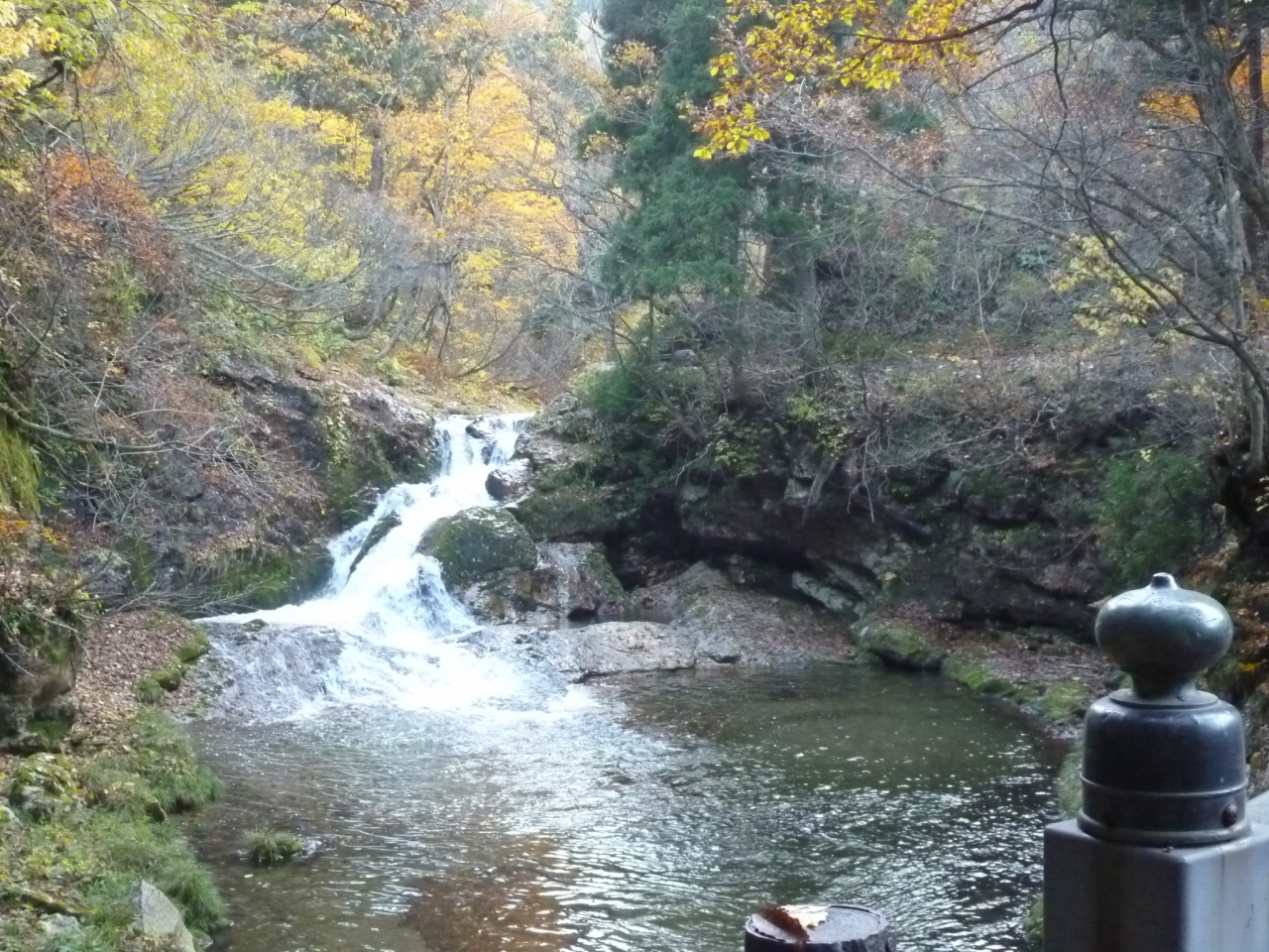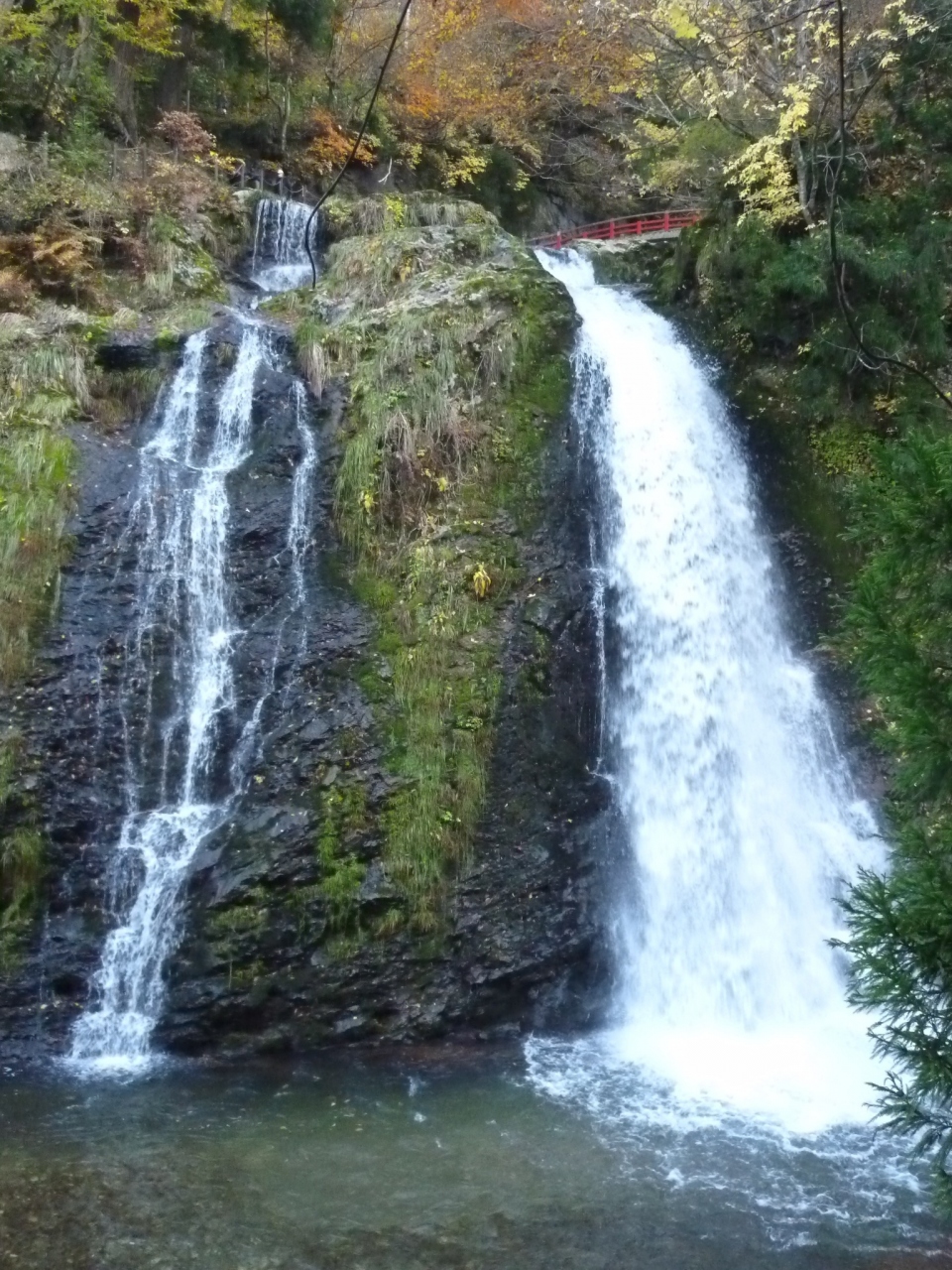 さらに、滝展望台とは反対側の川対岸を上流に急こう配の坂を上がると、きれいな朱塗りの橋があり、さらにその上流にはやや小ぶりの第2の滝が見られる。