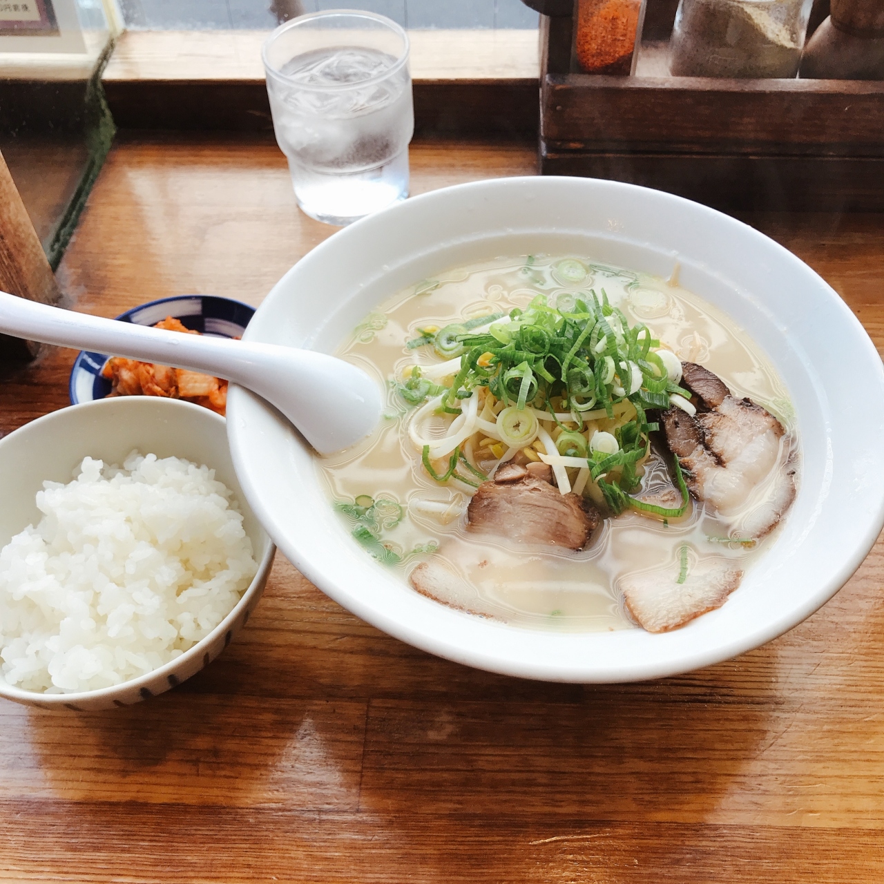 大阪メトロ四つ橋線肥後橋駅のほぼ真上にあるビルの2階にお店があって、ランチタイムはサラリーマン中心に人気があるようでした。ラーメン定食(税込800円)をオーダーしましたが、あっさりとした豚骨ラーメン+ライス+キムチという内容でした。仕事中だったのでニンニク抜きにしましたが、ニンニク入りの方が間違いなく美味しいと思います。