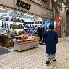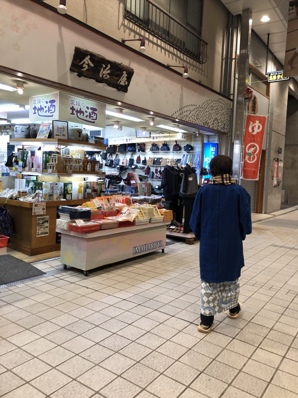 道後温泉駅側からハイカラ通り商店街に入っていくと右手にあります。ザ・温泉街、ザ・観光地のお土産屋さんと言った感じのお店です。定番のお菓子などの土産類のほかに、カバンや衣類、日本酒の品揃えの充実さが特徴ですね。