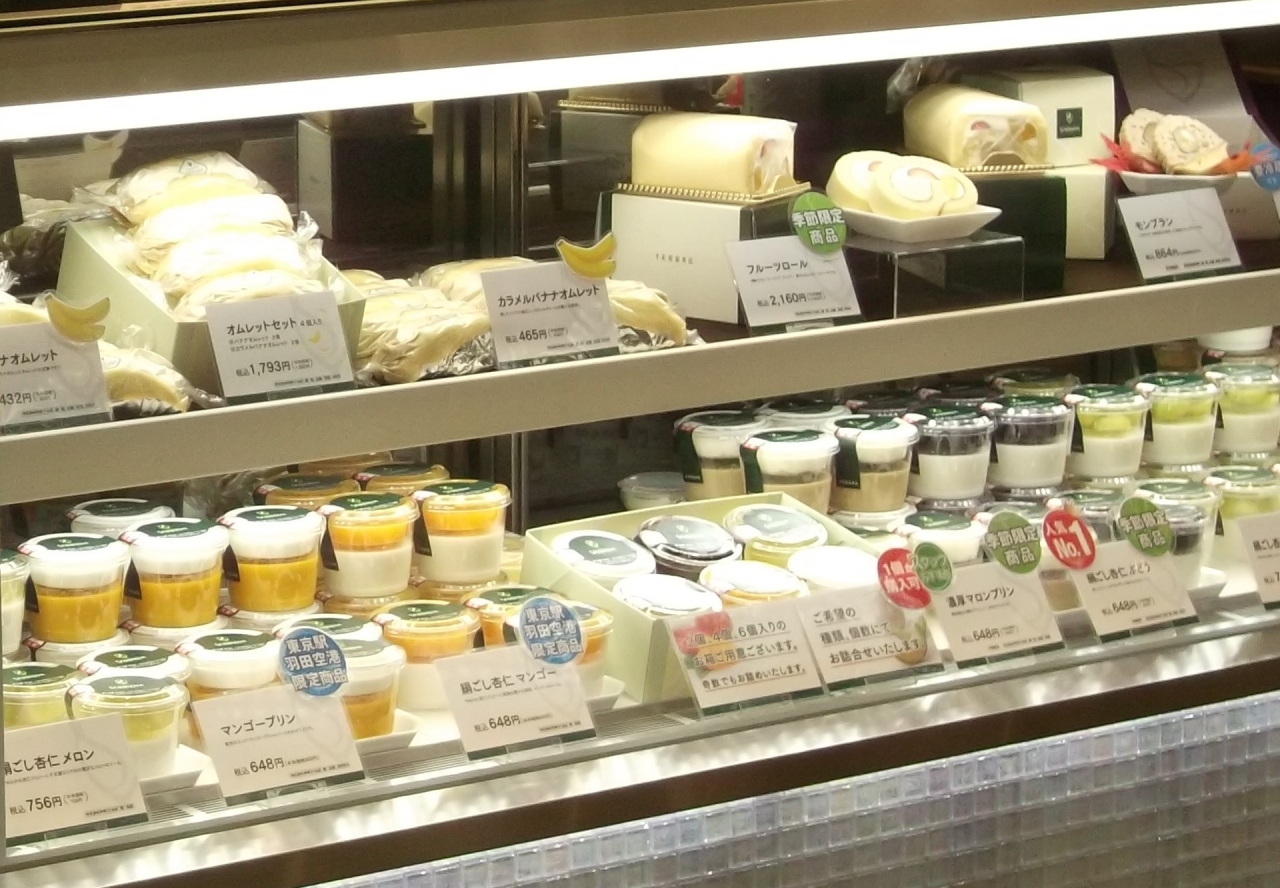 東京駅改札内の東京名品館にある千疋屋のショップです。東京駅・羽田空港限定のマンゴープリンが販売されていました。値段は結構しますが、マンゴーの味はかなり濃厚です。一緒に付いているクリームをかけるとマンゴーの味がすこし薄れてはしまいますが、マンゴーの酸味とクリームの甘みのバランスが良く気に入りました。
