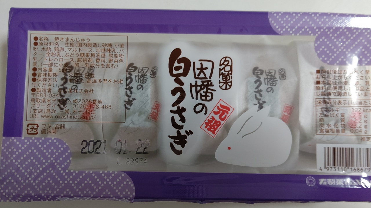 物産展で「因幡の白うさぎ」を買いました。民話にもある有名なうさぎ。和菓子にするととてもかわいらしかったです。目の位置が耳にありちょっと奇妙でしたが。黄身あんが優しい甘さで、大きさも控えめ。鳥取県を訪れたら必ず購入したい一品です。