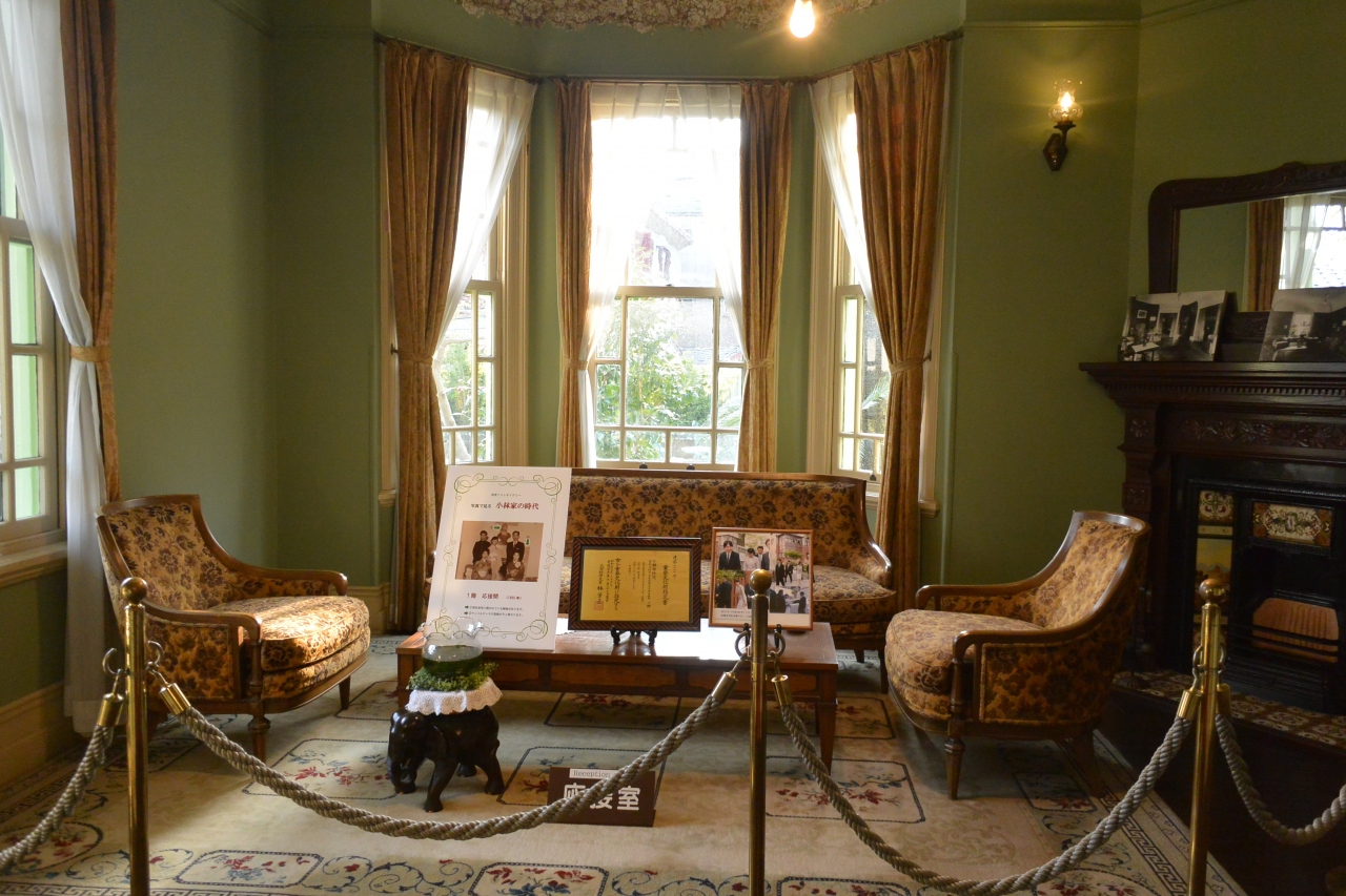 各部屋によって違うタイルがとてもきれいでした。1970年代まで小林家が住んでいたので、どの部屋がどのように使われていたかということもわかっているので、それに基づいて部屋のインテリアが復元されており、中には小林家に実際あった調度品なども飾られていました。再現度の質が高いように思われ、内部見学はおすすめです。風見鶏の館との共通券で割引になります。