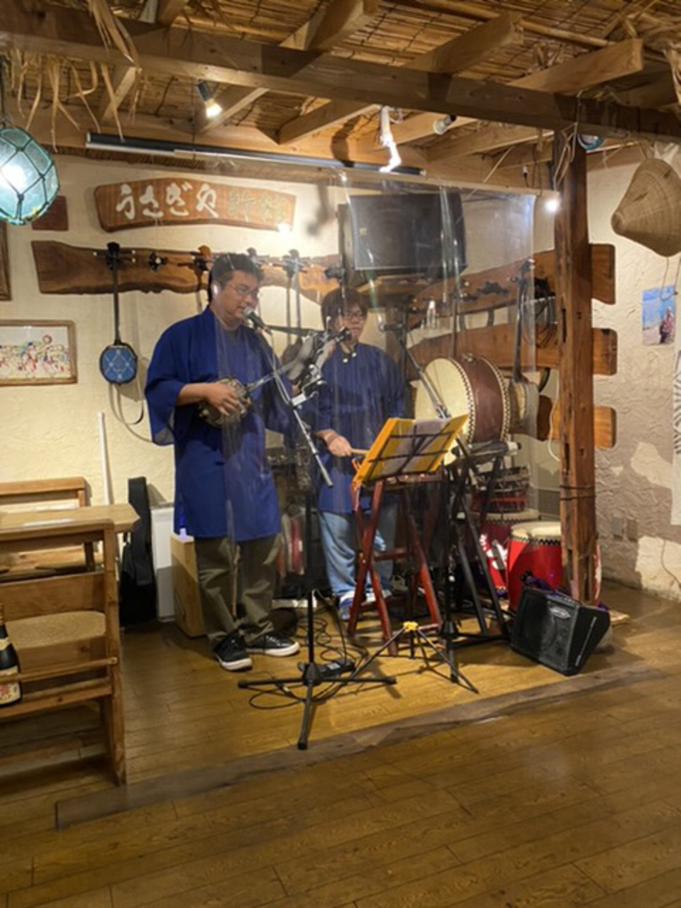 沖縄の料理が充実してますが1番のお目当ては島唄ライブです。生で島唄が聴けて良かったですよ。さんばを叩いて!