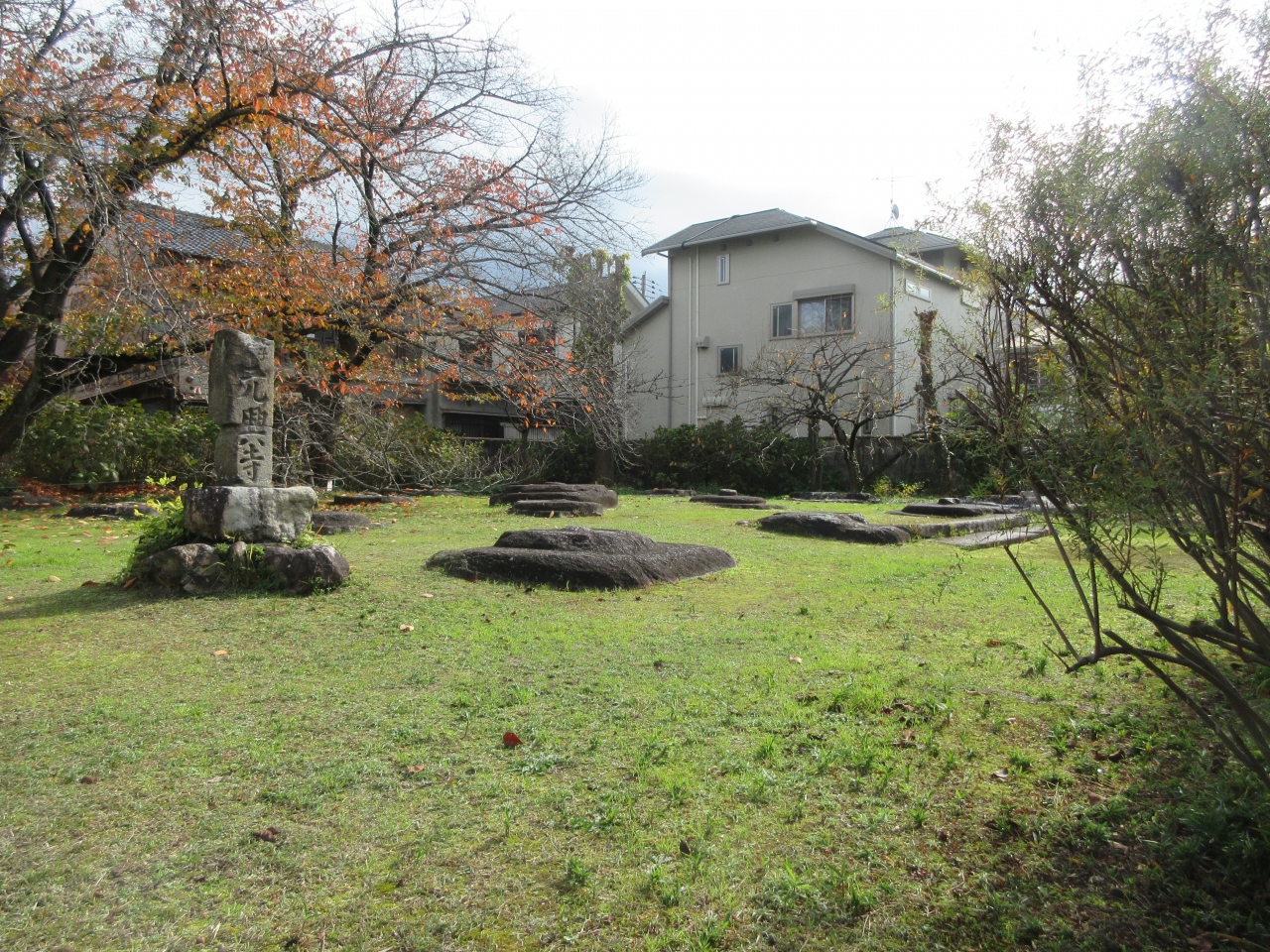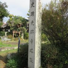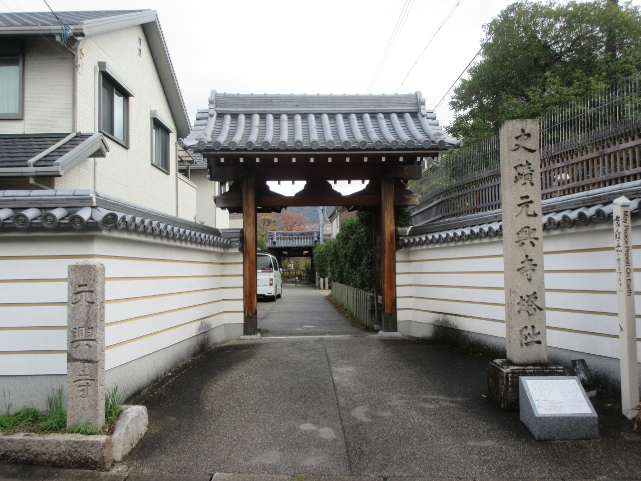 元興寺近くの御霊神社の裏に、山門があります。個人住宅のように見えて入るのをためらってしまいましたが、山門の先にさらに門があり草地に礎石がありました。奈良時代の元興寺の五重塔が建っていましたが、1859年に焼失したことが説明板に記されていました。住宅が囲み木々が生えている明るい場所で。東大寺の次に大きかった元興寺の最盛期を知ることができる場所です。