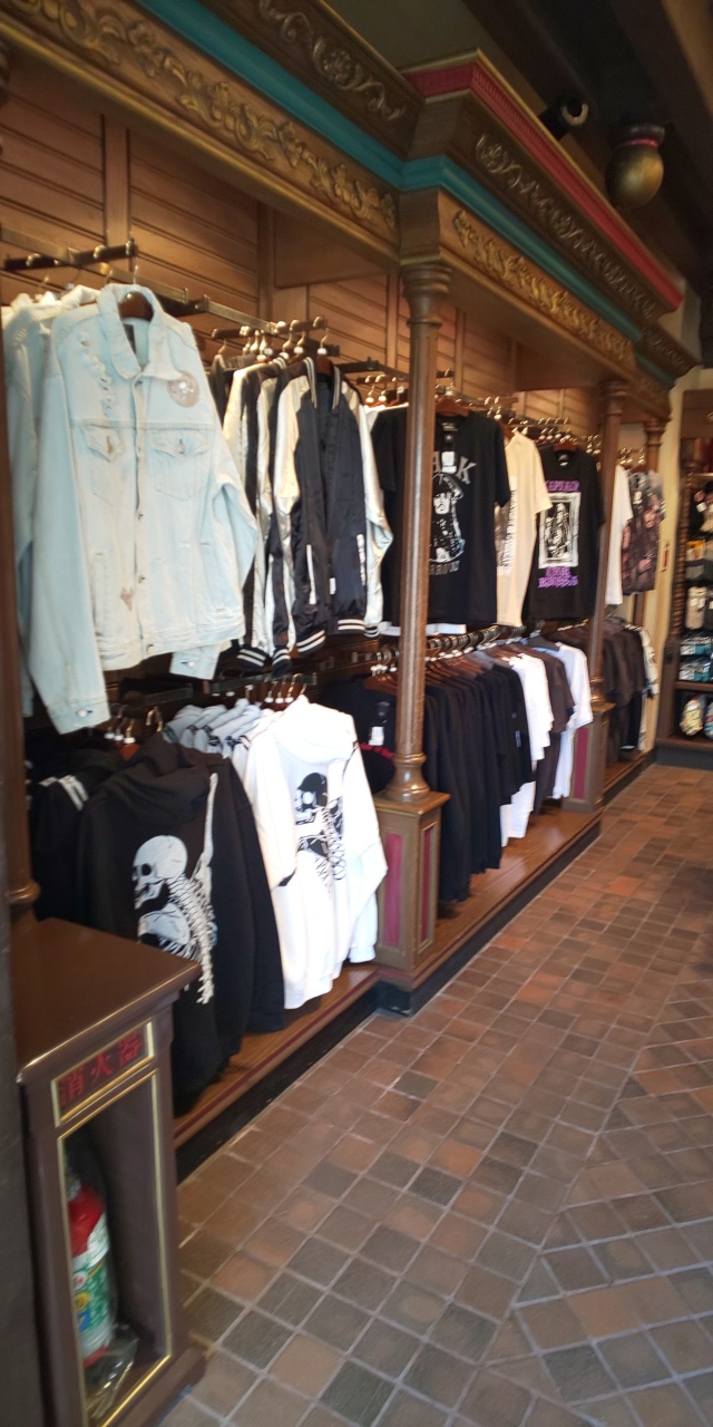 その他、骸骨モチーフの服や雑貨もたくさんあって、こういうテイストが好きな人には楽しめるんじゃないかなと思います。私の好きなテイストではありませんでしたが、海賊のミッキーグッズはここでしか買えないし、レアです。海賊ミッキーはかわいいので好きです。