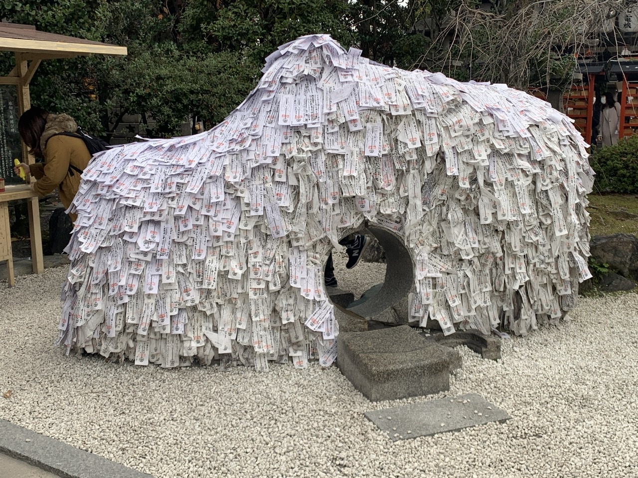 まずは本殿に参拝をし、お願い事を書いた形代を持って願い事を念じながら『縁切り縁結び碑』の穴をくぐり、くぐり終えたら、裏から戻る形で再度願い事を念じながらくぐり、碑に形代を貼って祈願終了です!