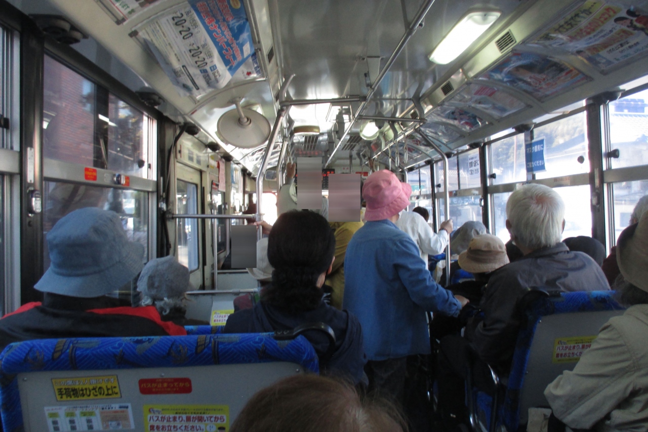 平日の午前中に、下関駅から数kmくらい離れた辺りから乗車したら、車中は密状態でした。同じ停留所からも乗った人も結構いましたが・・・。その後も、だんだん混んできて、車内を眺めてみたら、ここは養老院?かと思われる状況でした。平日はお年寄り専用?なんですね。