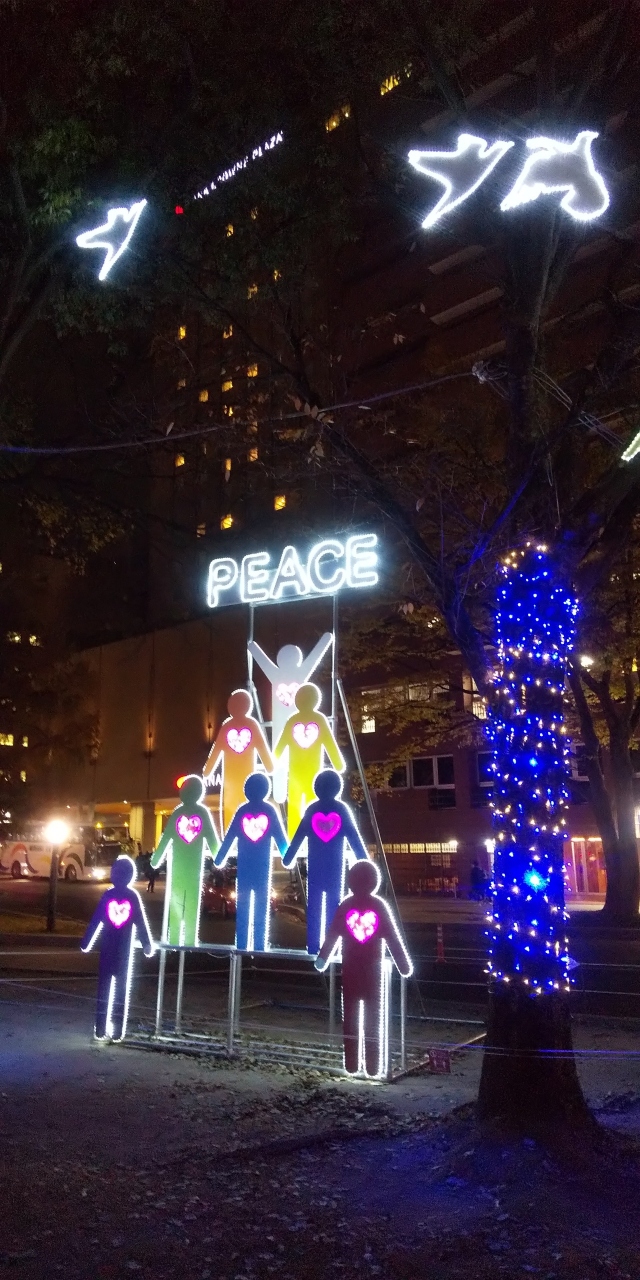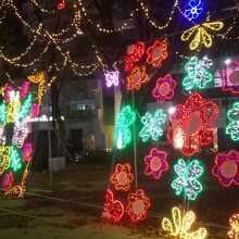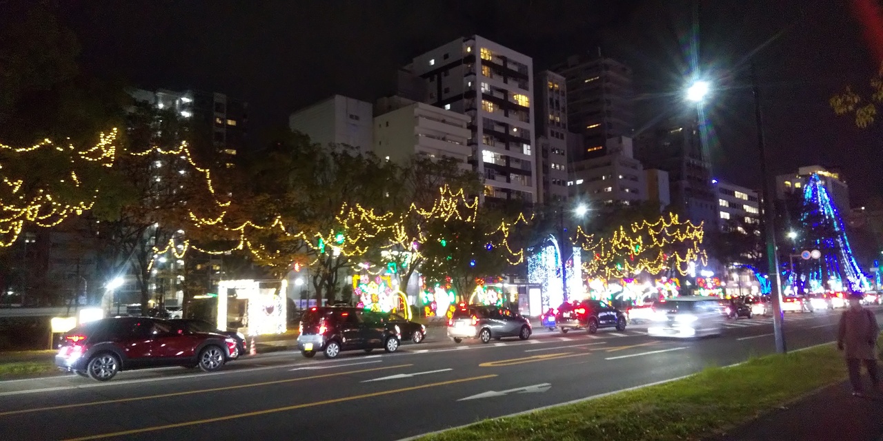 平和大通りのグリーンベルトをブロック毎にイルミネーションされています。電球の数は140万球。
