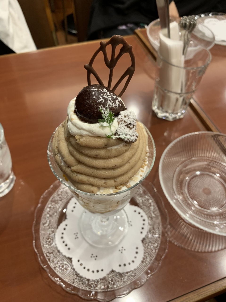 友人たちとパフェを食べに行きました。何種類もパフェがあり季節限定のものと通年のものがあるようでした。私は、モンブランのパフェを頼みました。とても美味しかったです。大きさの割に値段も高くなく、ゆっくり過ごせました。