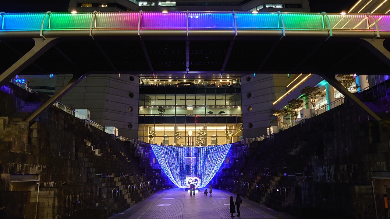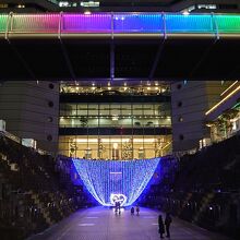 年によって内容が少し変わるようですが、今年は壁面の一部とブリッジ部分に光のイルミネーション装飾がされていました。