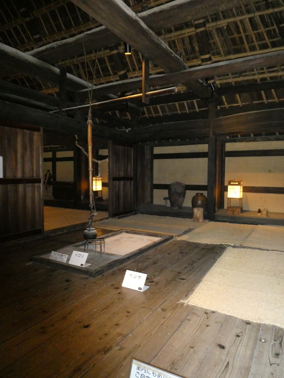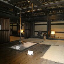内部はリビング的役割を果たしていた「おもて」と言われる部分と台所に近い「へんや」と言う部分大きく分かれています。使い込まれた梁や木戸・床板は磨かれて大変きれいな状態です。