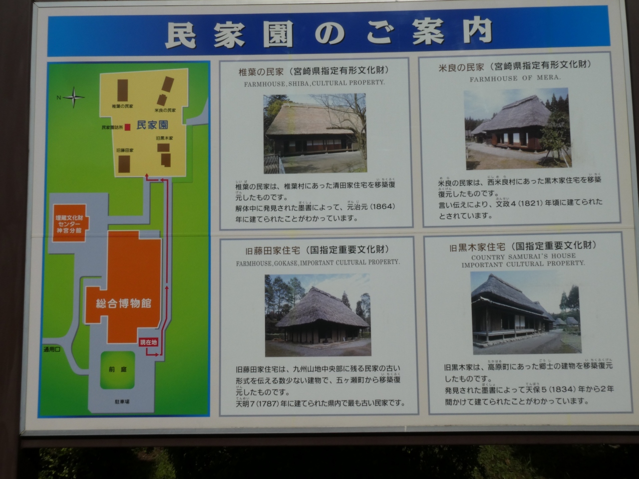 宮崎県内に現存していた江戸時代の民家や農家を4棟此処に移築して保存修復工事を加えて一般公開しています。