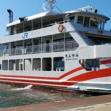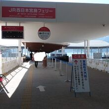 山陽本線宮島口駅から徒歩5分くらい所にある乗り場から、日本三景宮島を結ぶフェリー。JR西日本が運行。15分間隔で運行し、所要時間は約10分、運賃は180円ととても安いと感じた。宮島へはもう一社、隣接する乗り場から同頻度で運行されており、時間に合わせて使い分けられる点も便利。