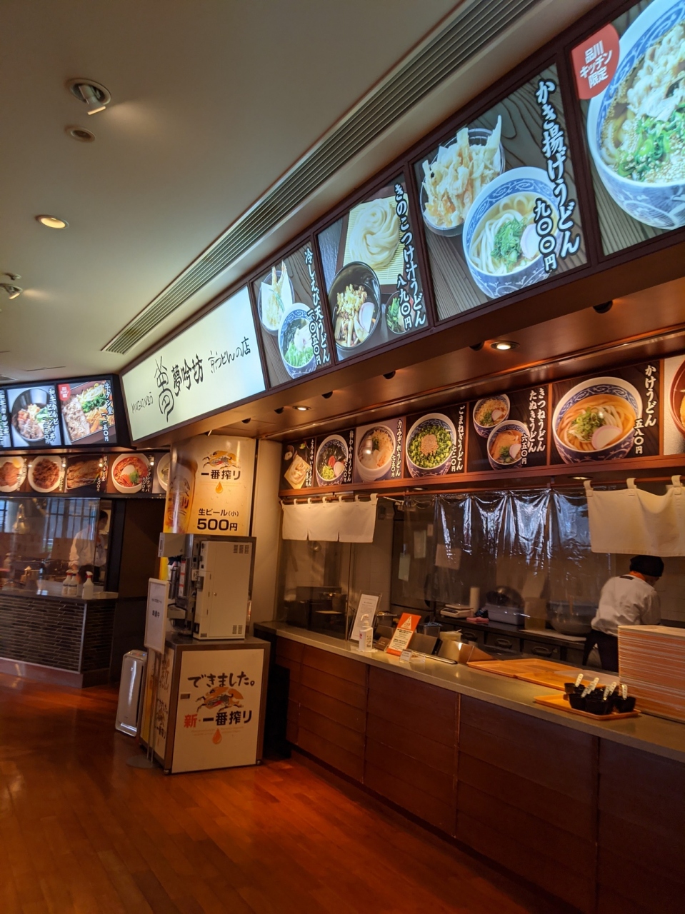 品川プリンスホテル内のフードコート(品川キッチン)にある京うどんのお店です。フードコートのうどんの割りには値段は高めでしたが、うどんはコシがあって美味しかったです。また、天ぷら(かき揚げ)も揚げたてサクサクでした。