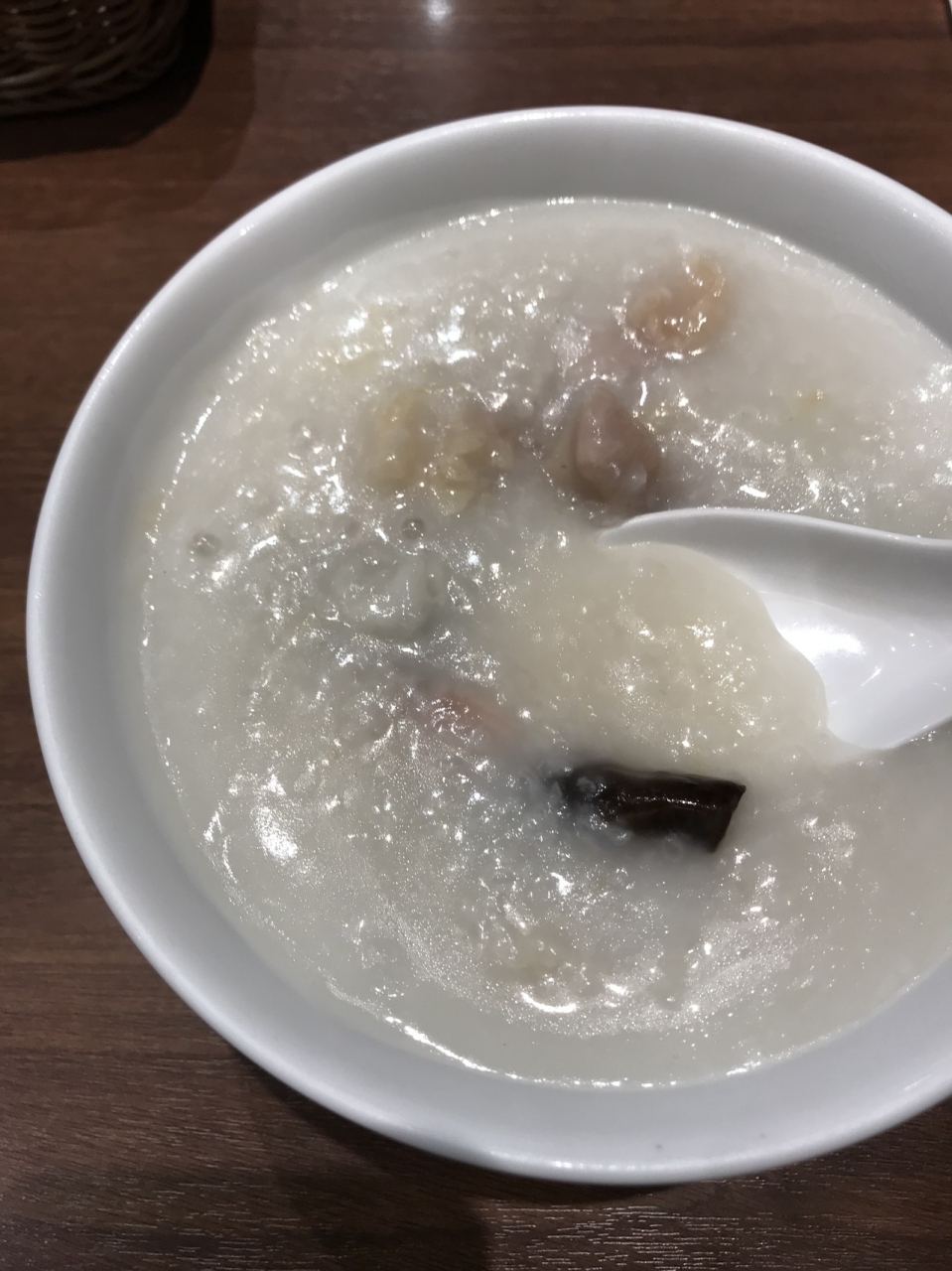お粥が食べたくなり、高島屋日本橋店6階の糖朝へ。入口に名前を書き、呼ばれるまで外で待ちます。10分ほど待って入店しましたが、中はガラガラ、かなりソーシャルディスタンスに気を使っているのでしょうか。鶏肉と椎茸のお粥を頼みましたが、具沢山でやや脂っこく感じました。