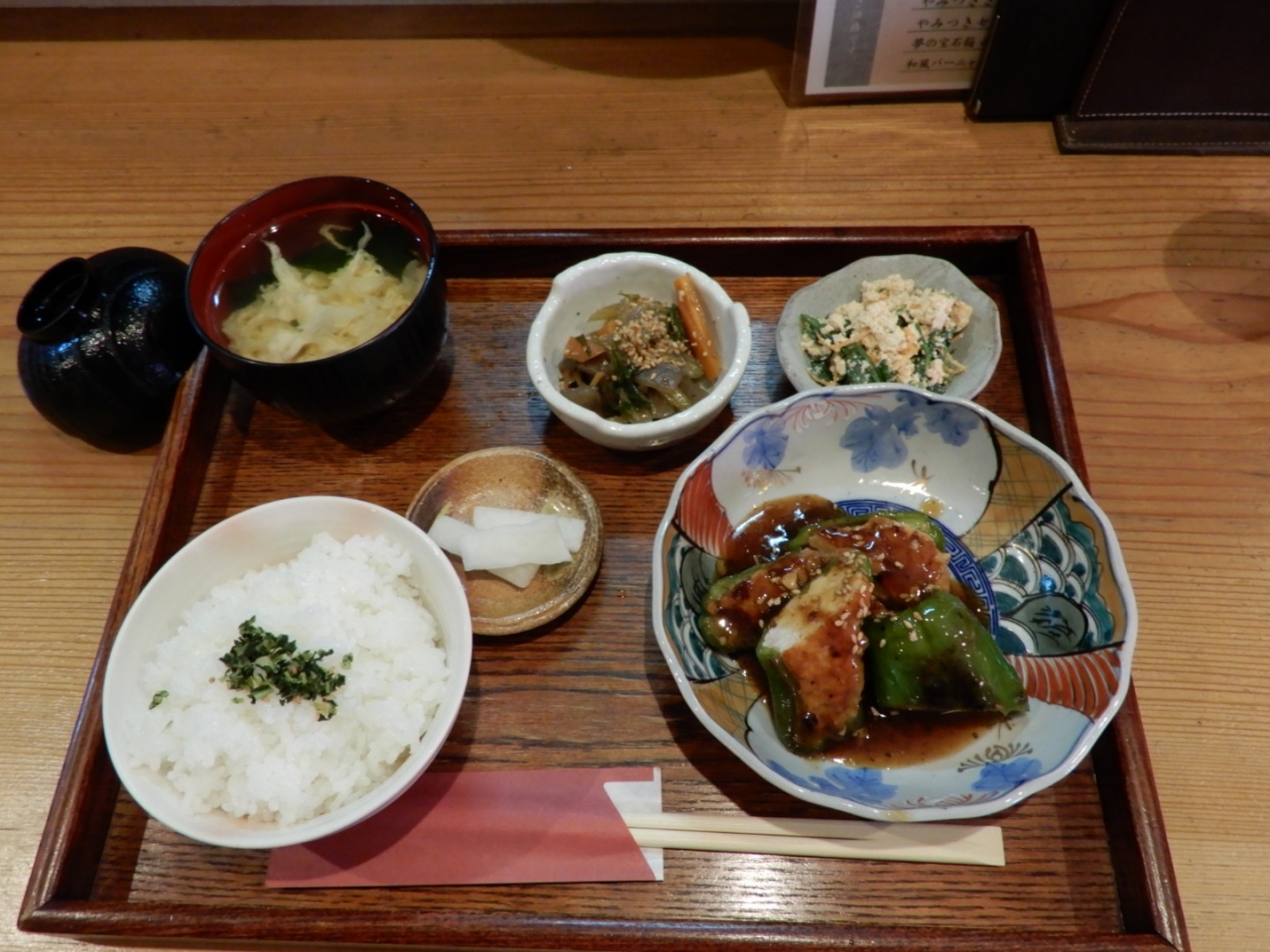 本日のメニュー「肉」ピーマンの肉詰め「魚」カレイの唐揚げ